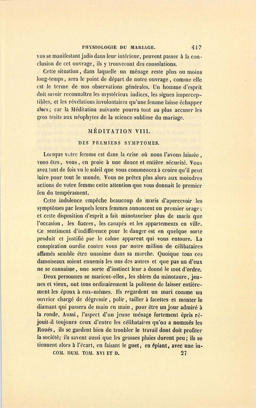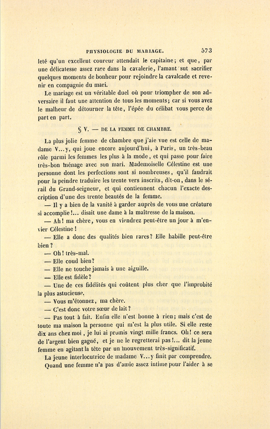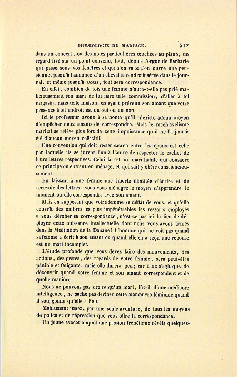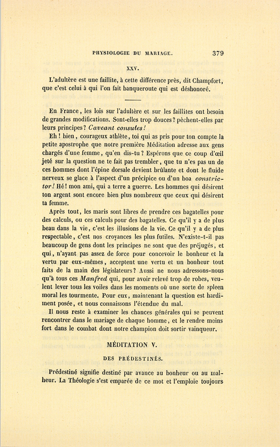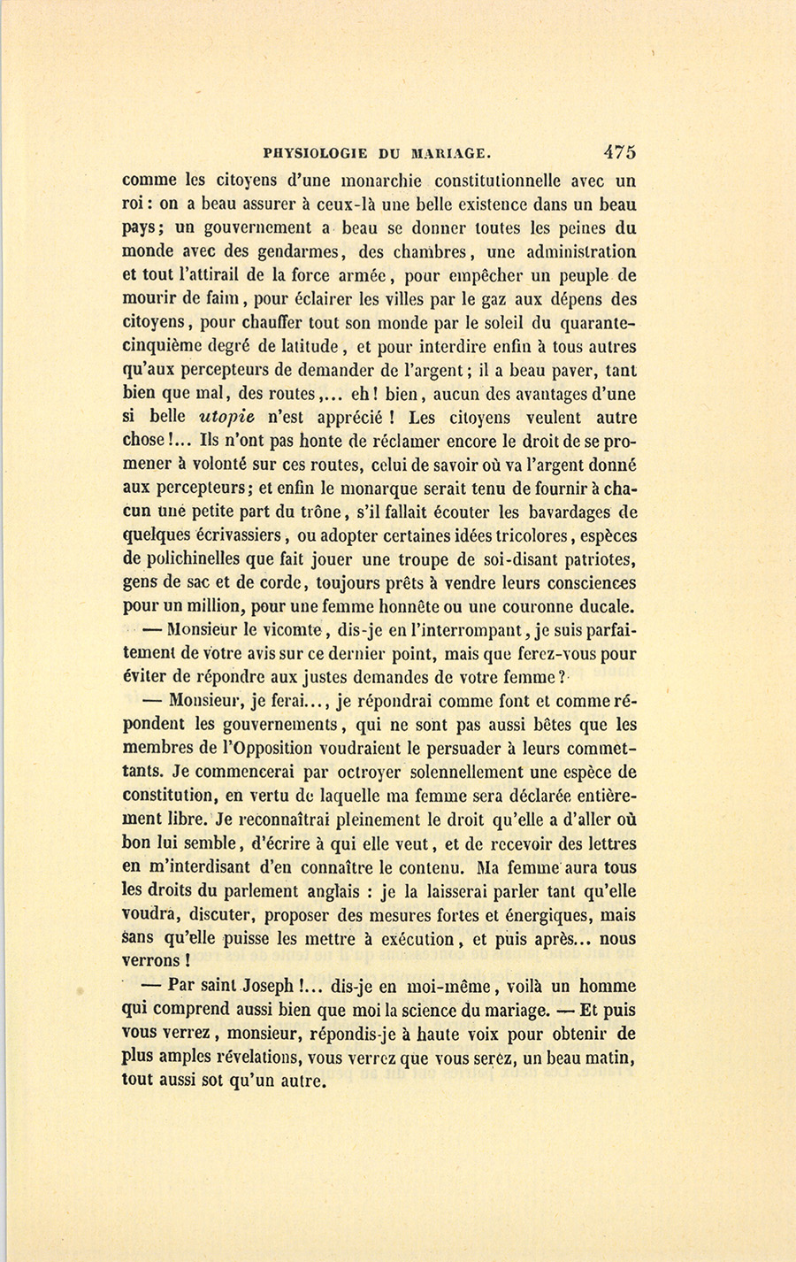 Ce n’est pas à vous que s’adresse la Physiologie du Mariage, puisque vous n’êtes pas mariés. Ainsi soit-il toujours !