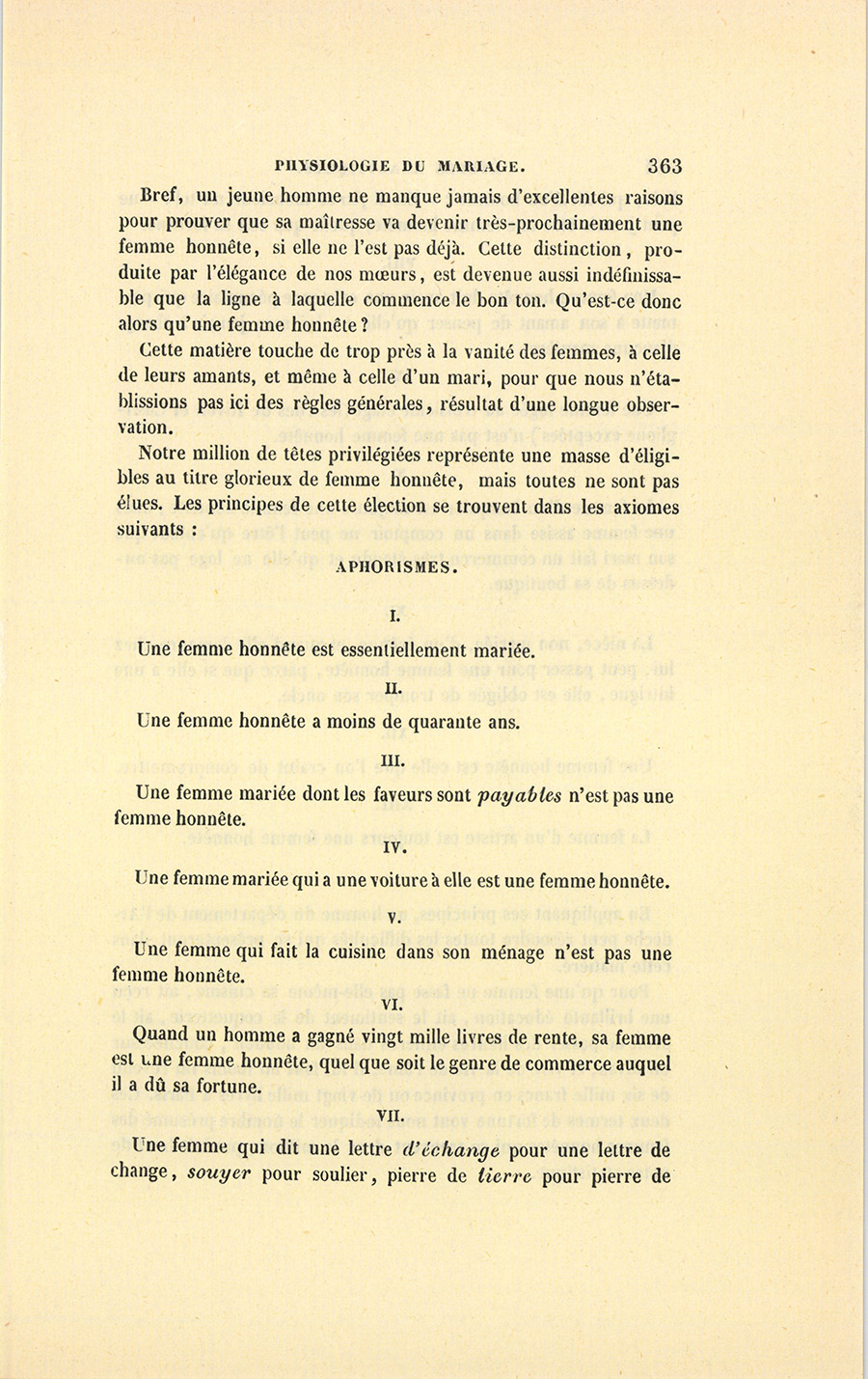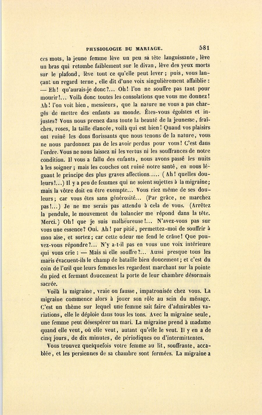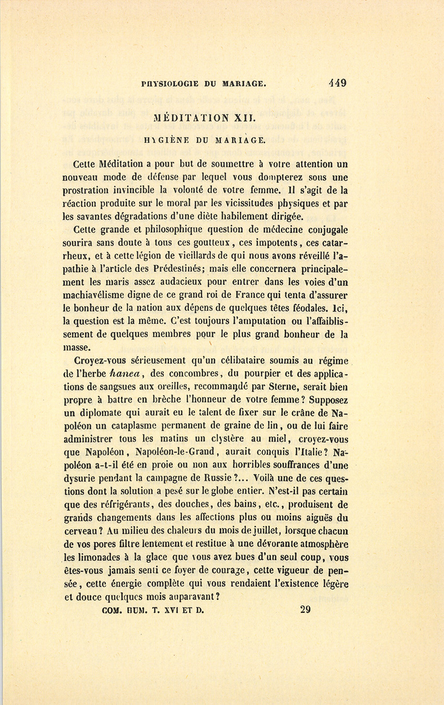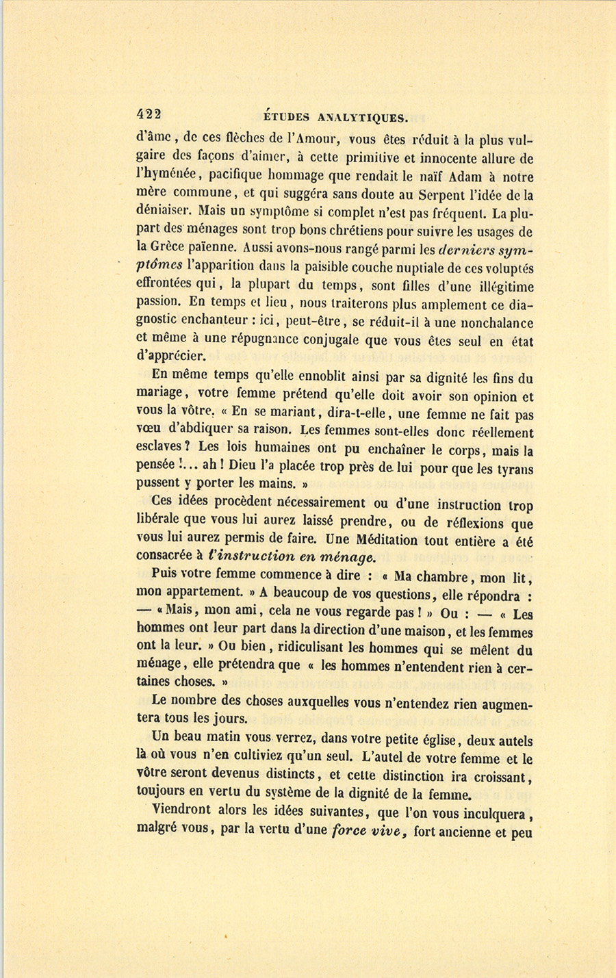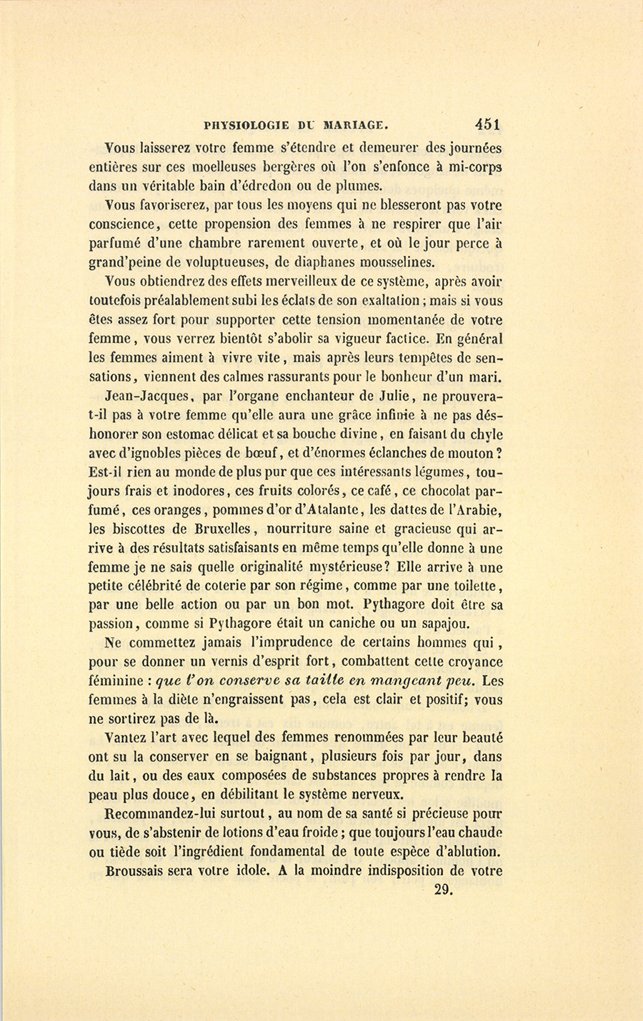 Ce n’est pas à vous que s’adresse la Physiologie du Mariage, puisque vous n’êtes pas mariés. Ainsi soit-il toujours !