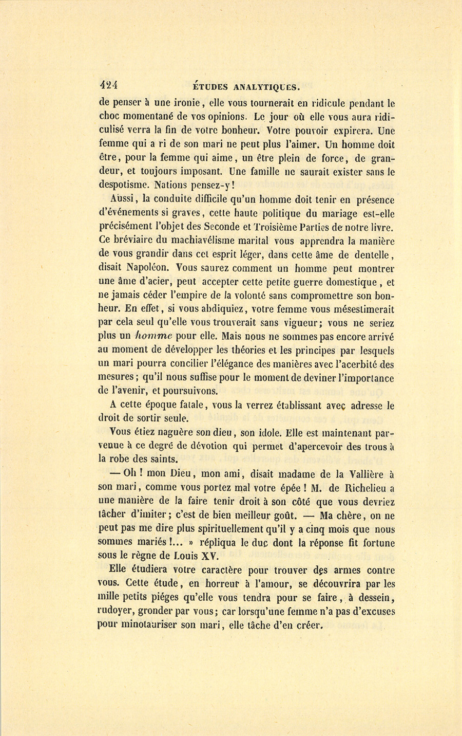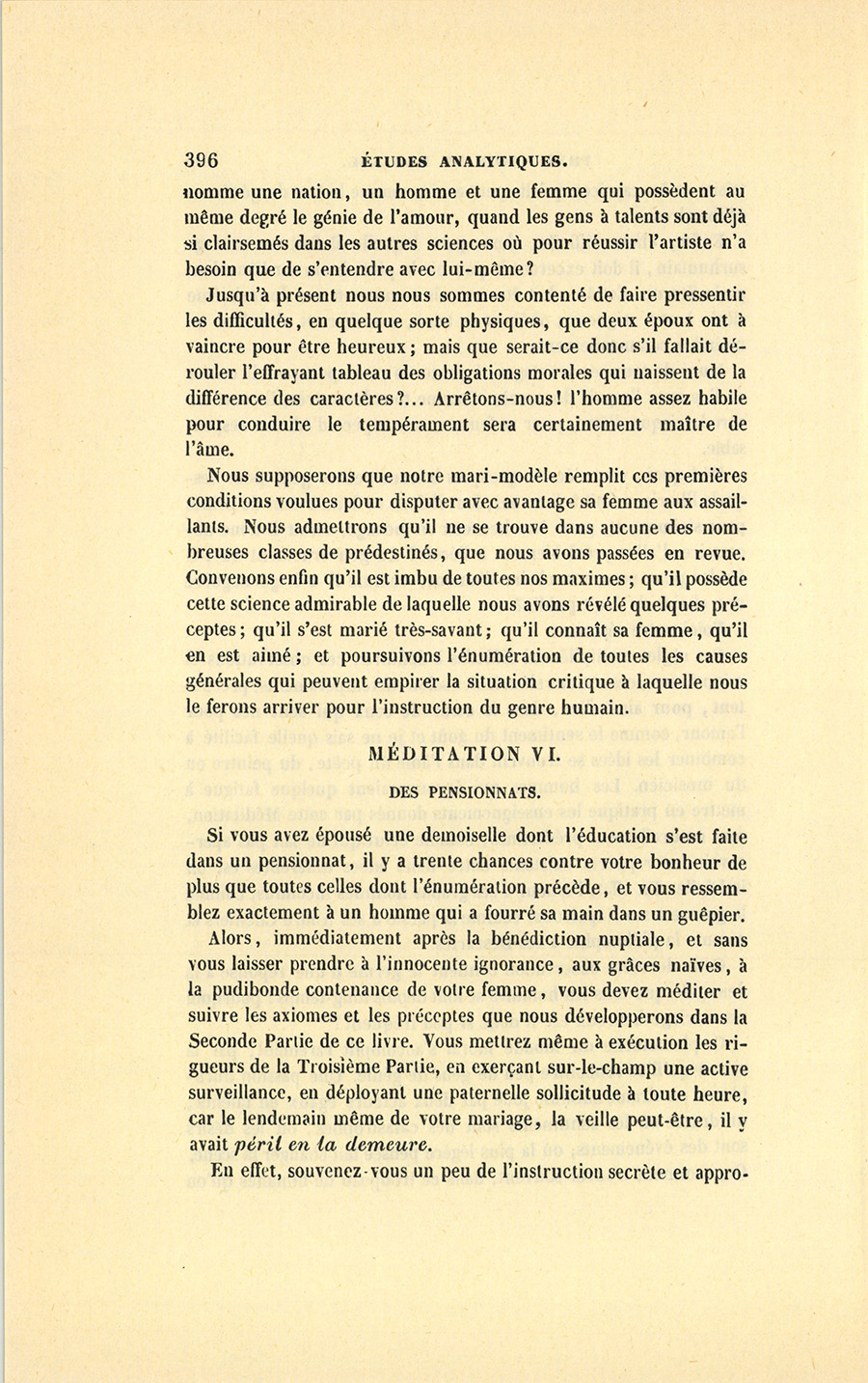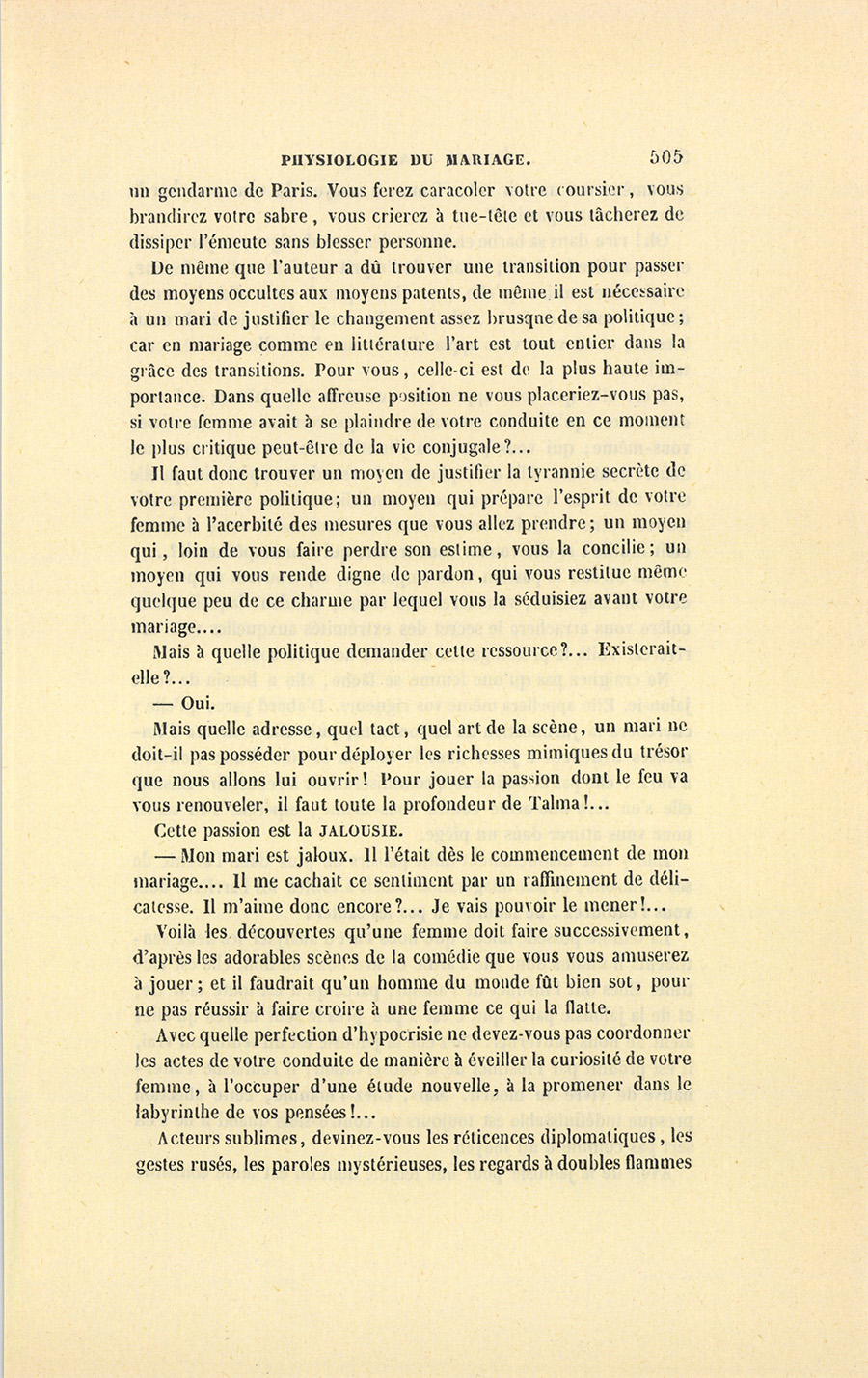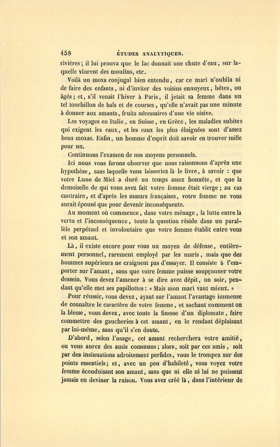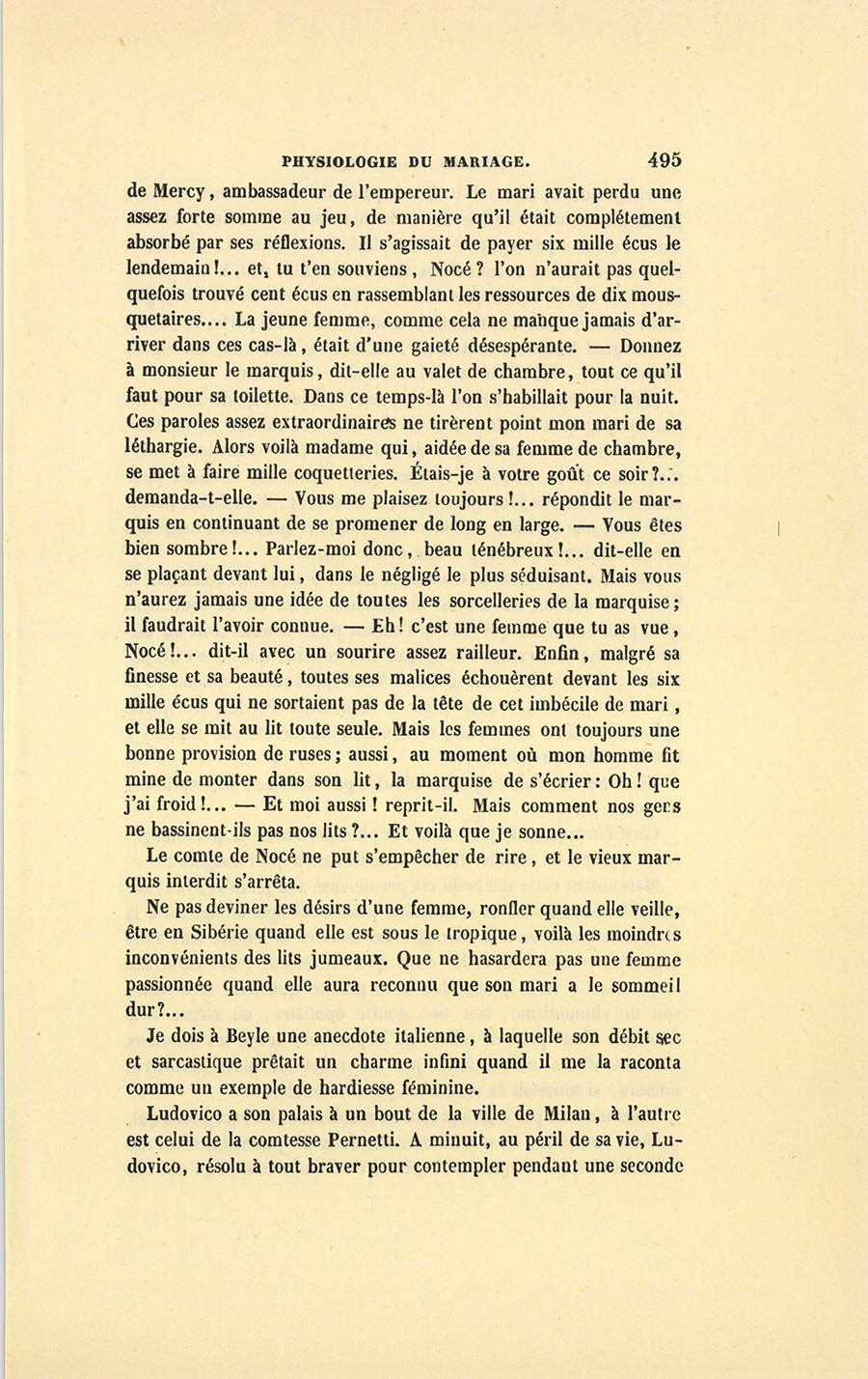 Ce n’est pas à vous que s’adresse la Physiologie du Mariage, puisque vous n’êtes pas mariés. Ainsi soit-il toujours !