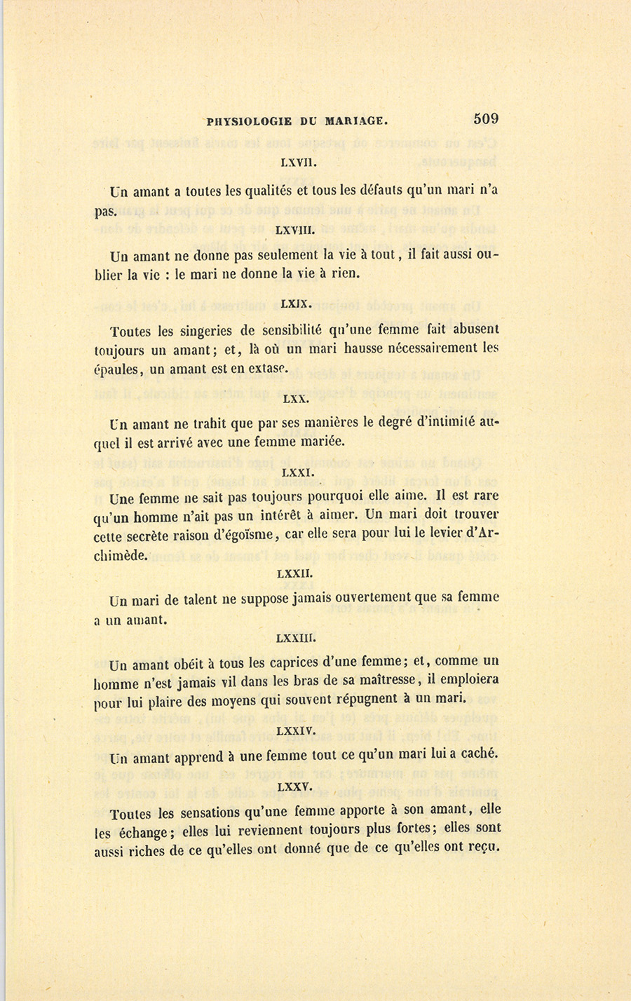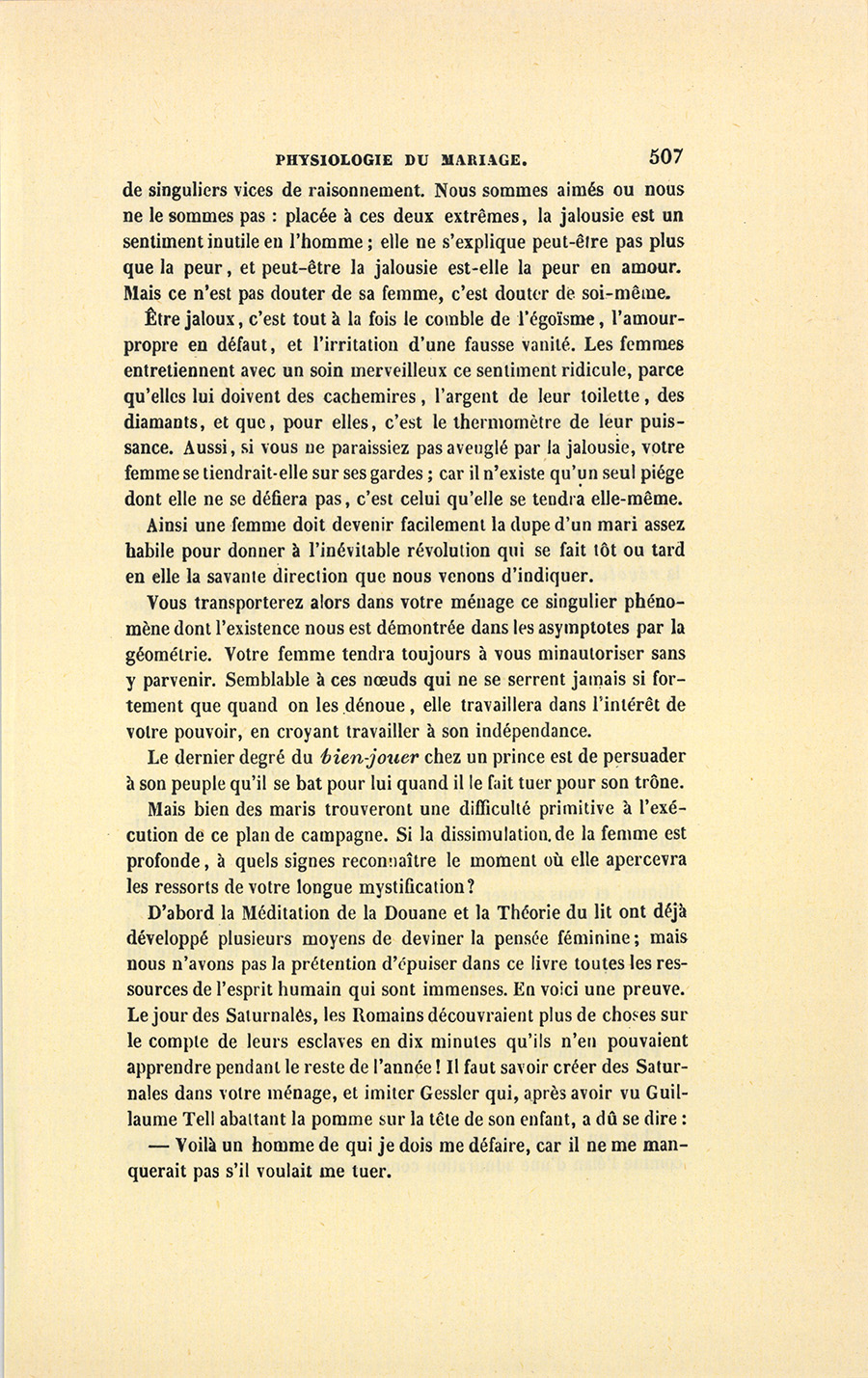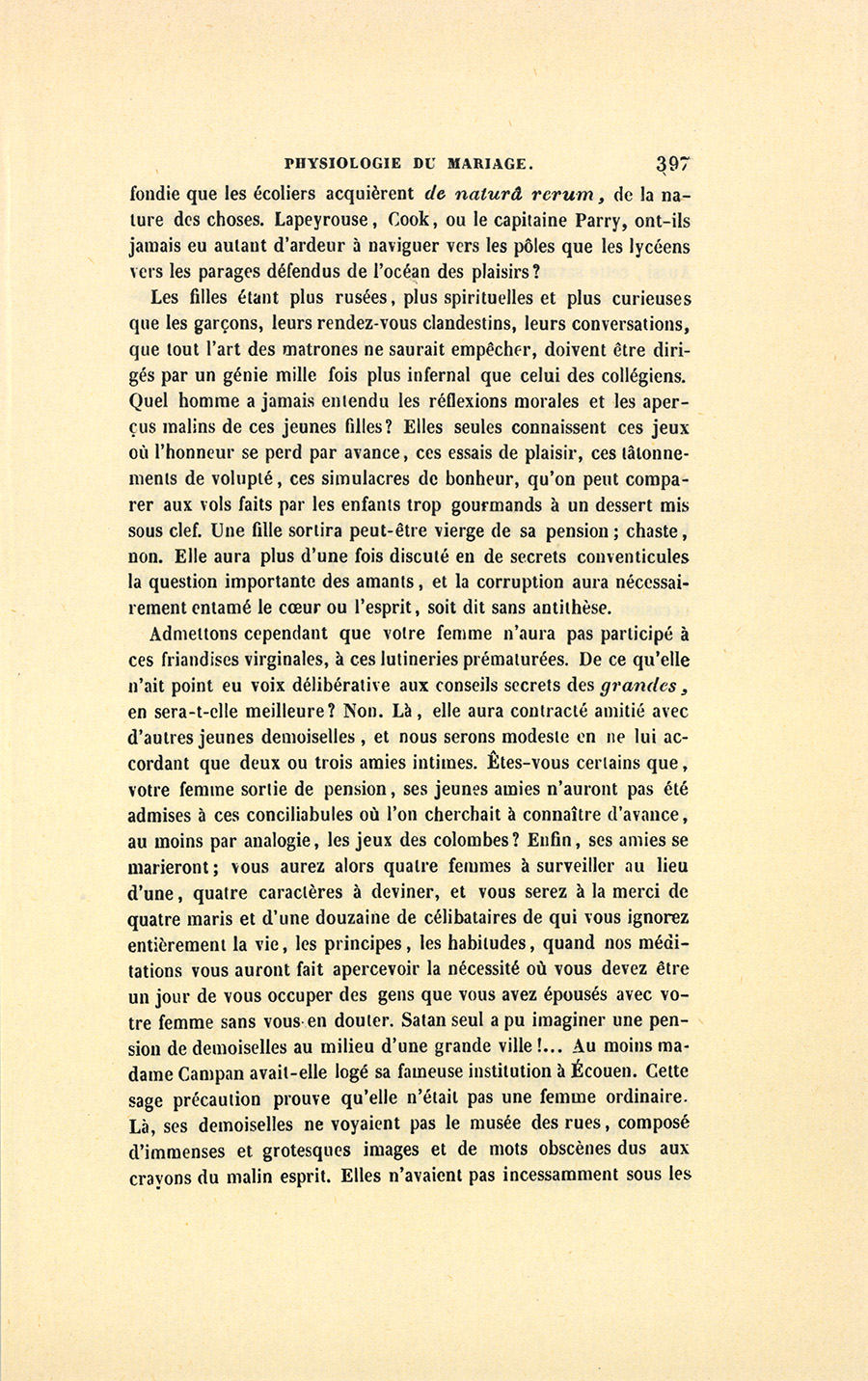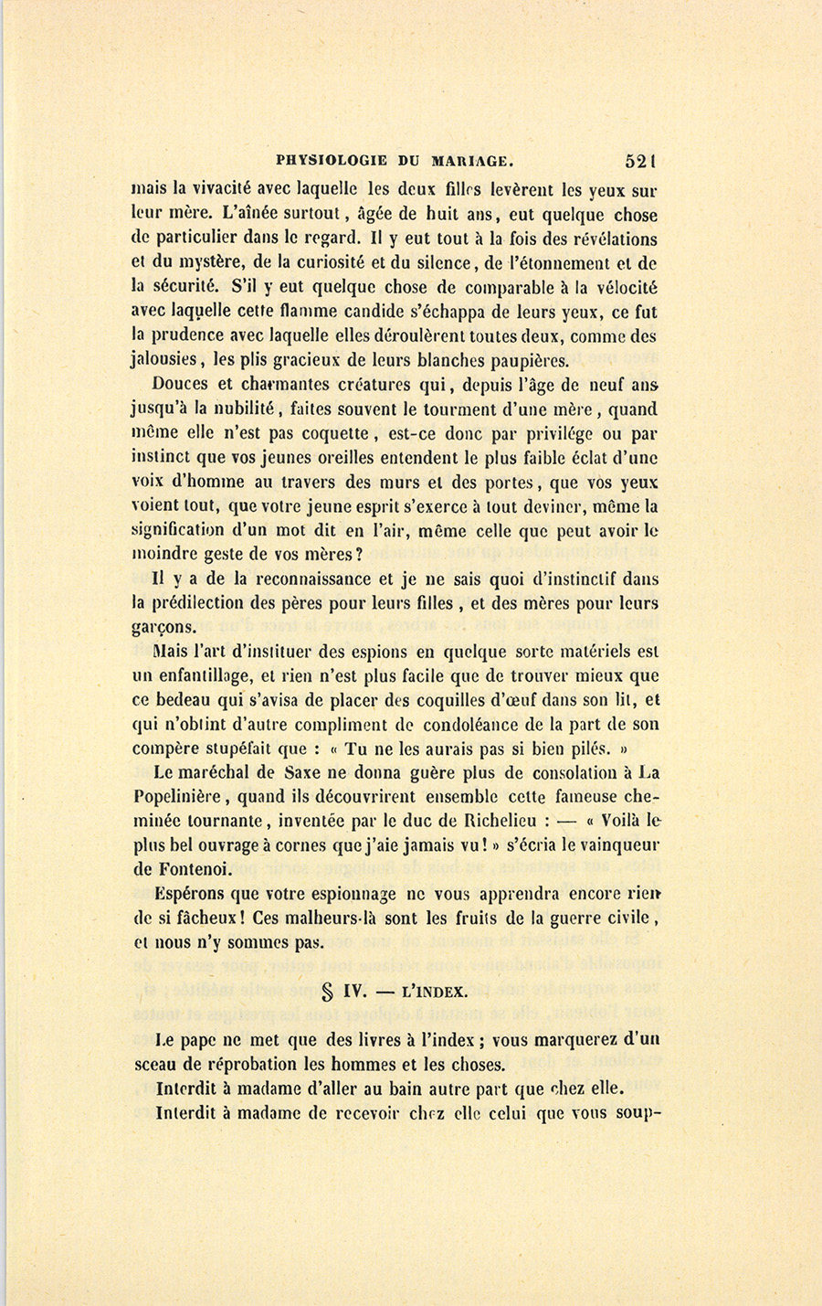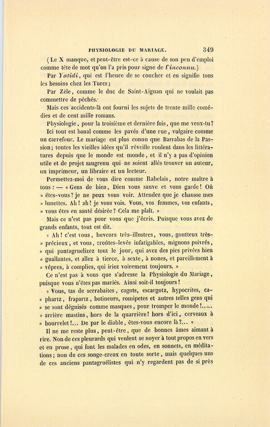 Ce n’est pas à vous que s’adresse la Physiologie du Mariage, puisque vous n’êtes pas mariés. Ainsi soit-il toujours !