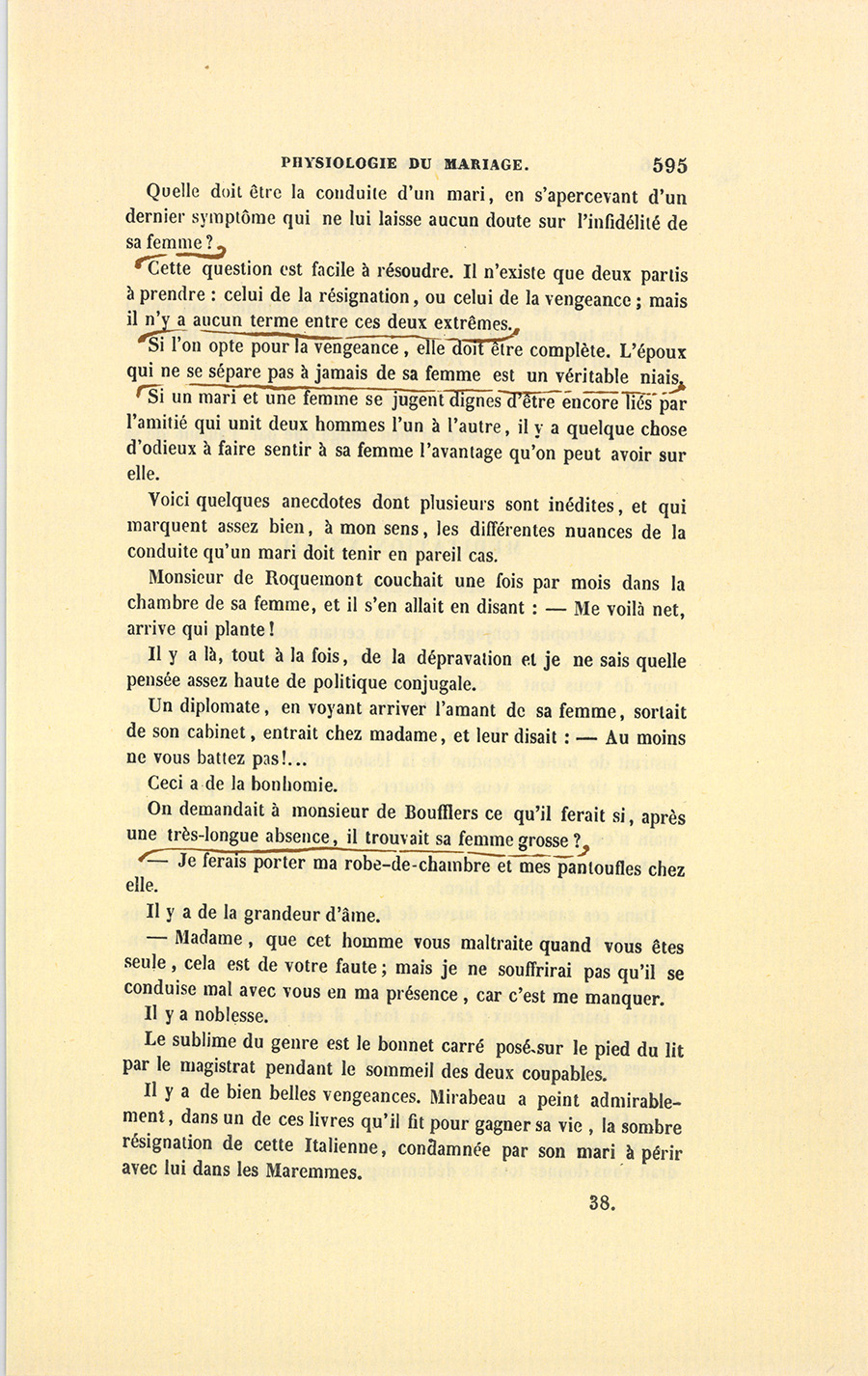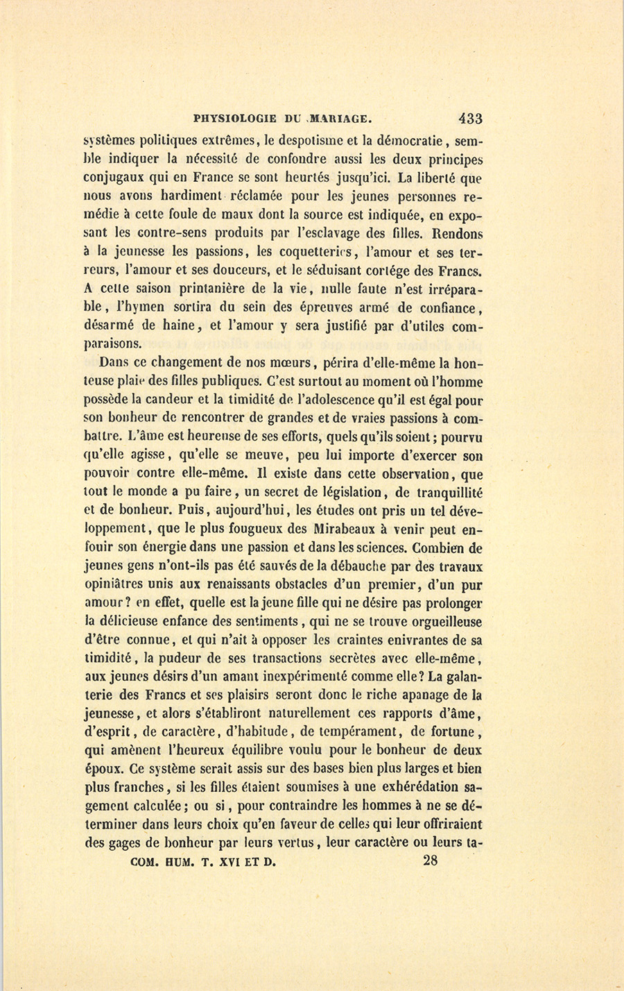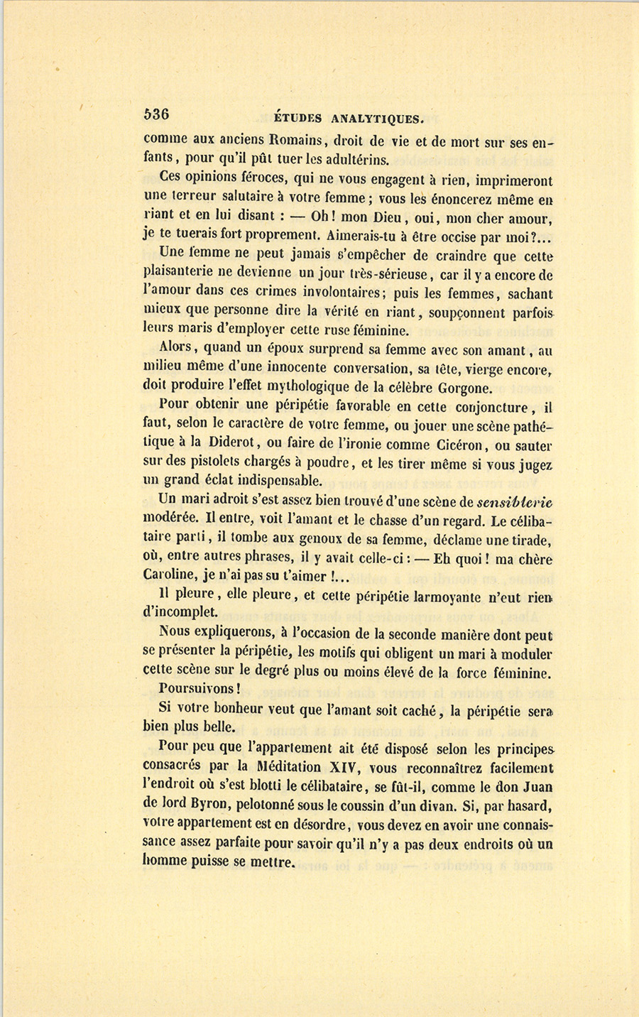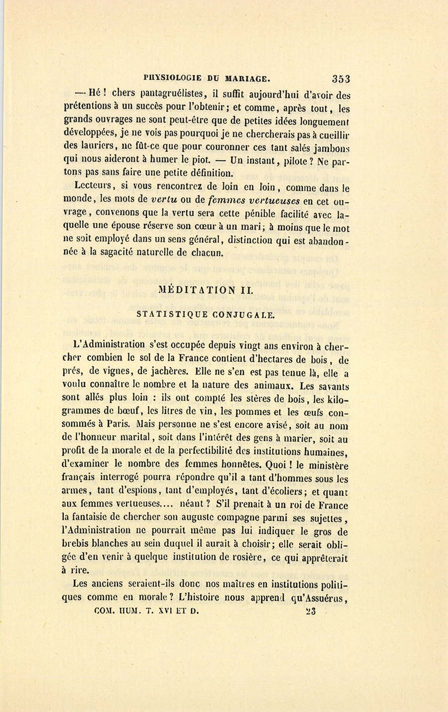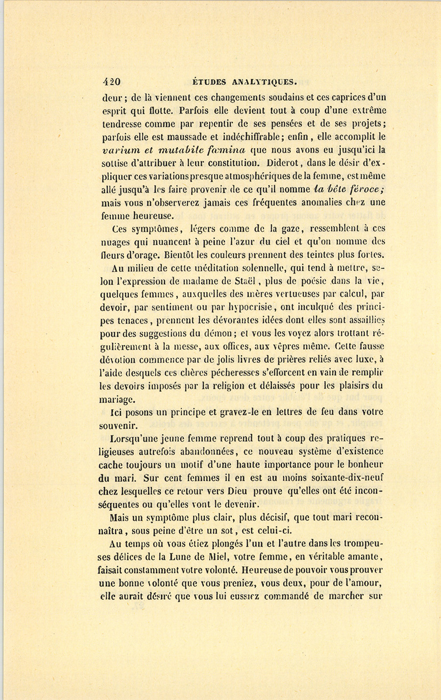 Ce n’est pas à vous que s’adresse la Physiologie du Mariage, puisque vous n’êtes pas mariés. Ainsi soit-il toujours !