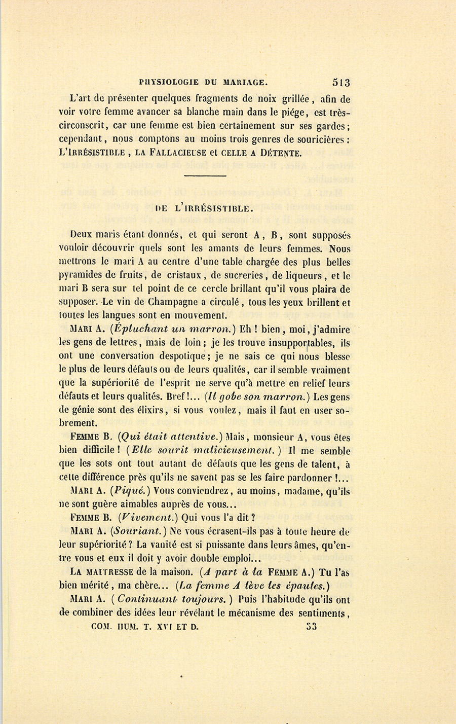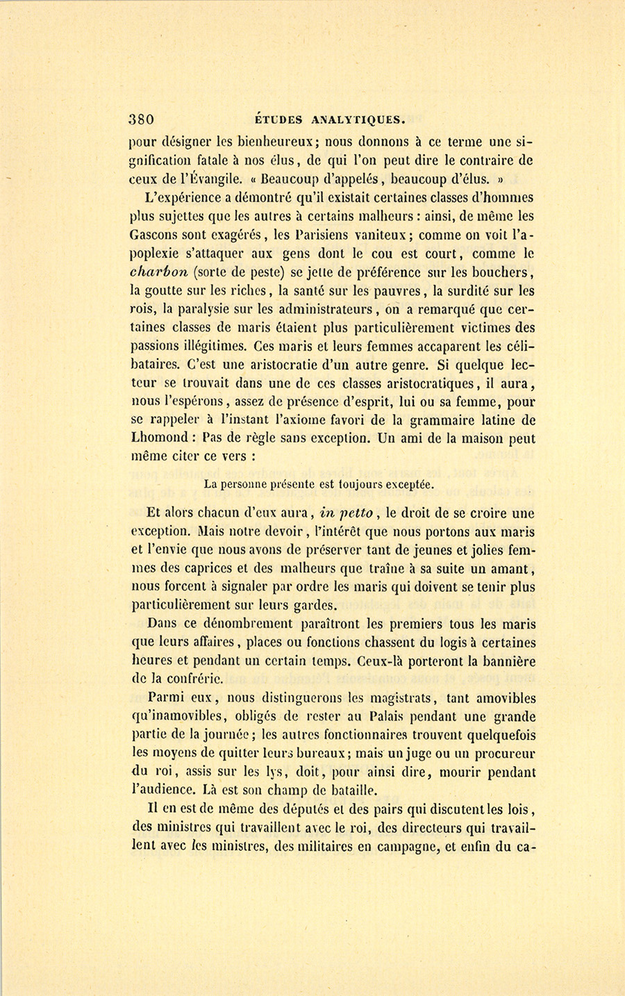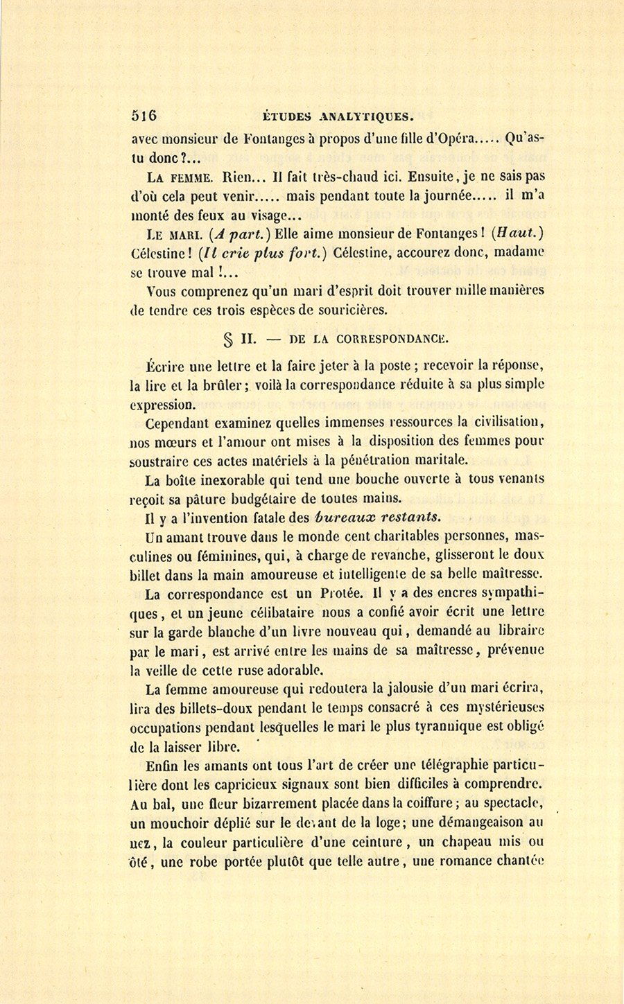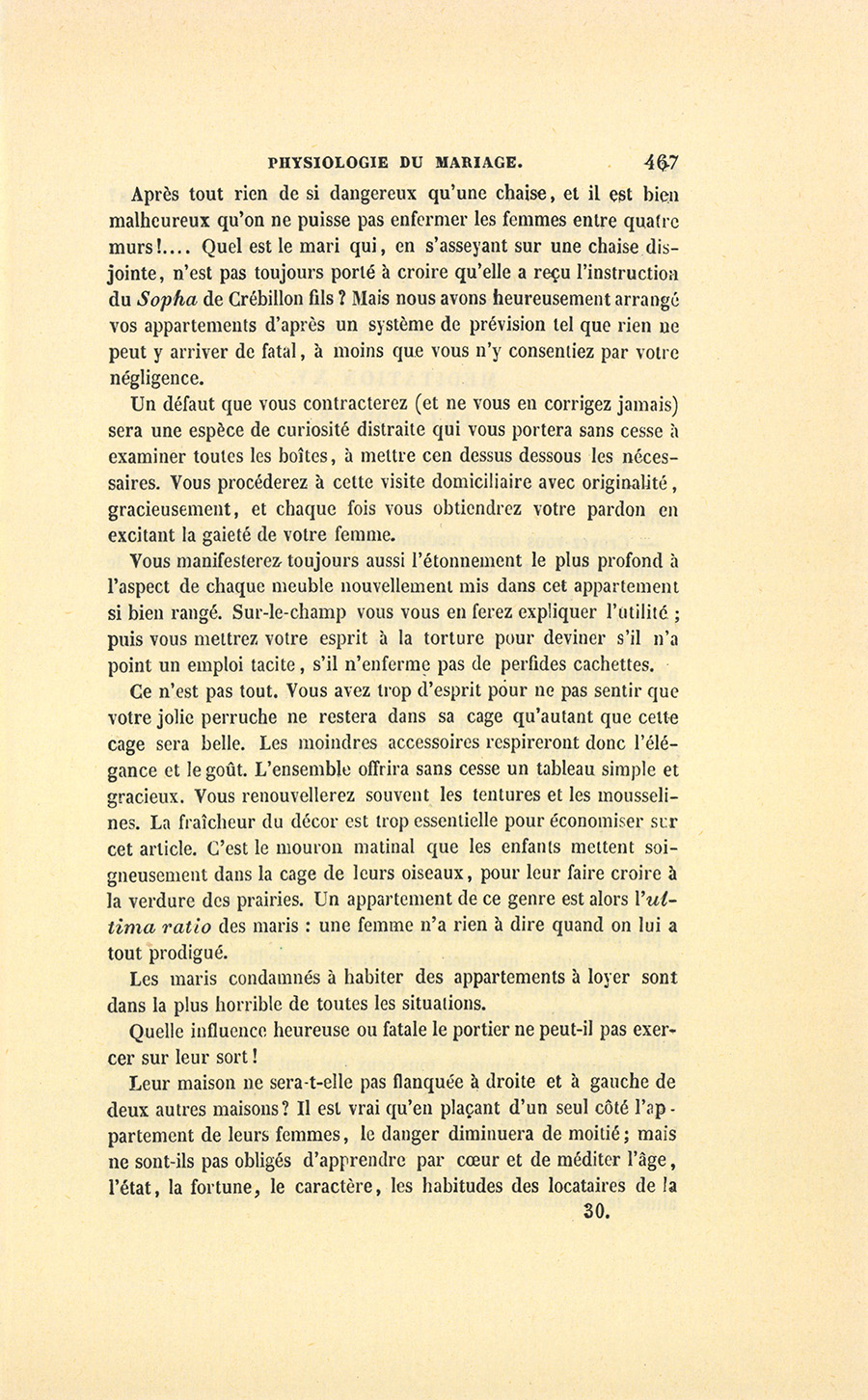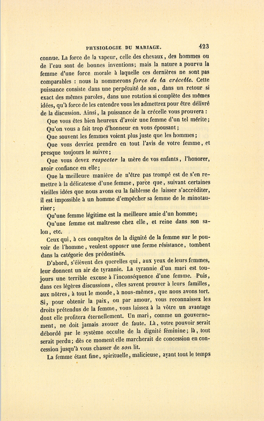 Ce n’est pas à vous que s’adresse la Physiologie du Mariage, puisque vous n’êtes pas mariés. Ainsi soit-il toujours !