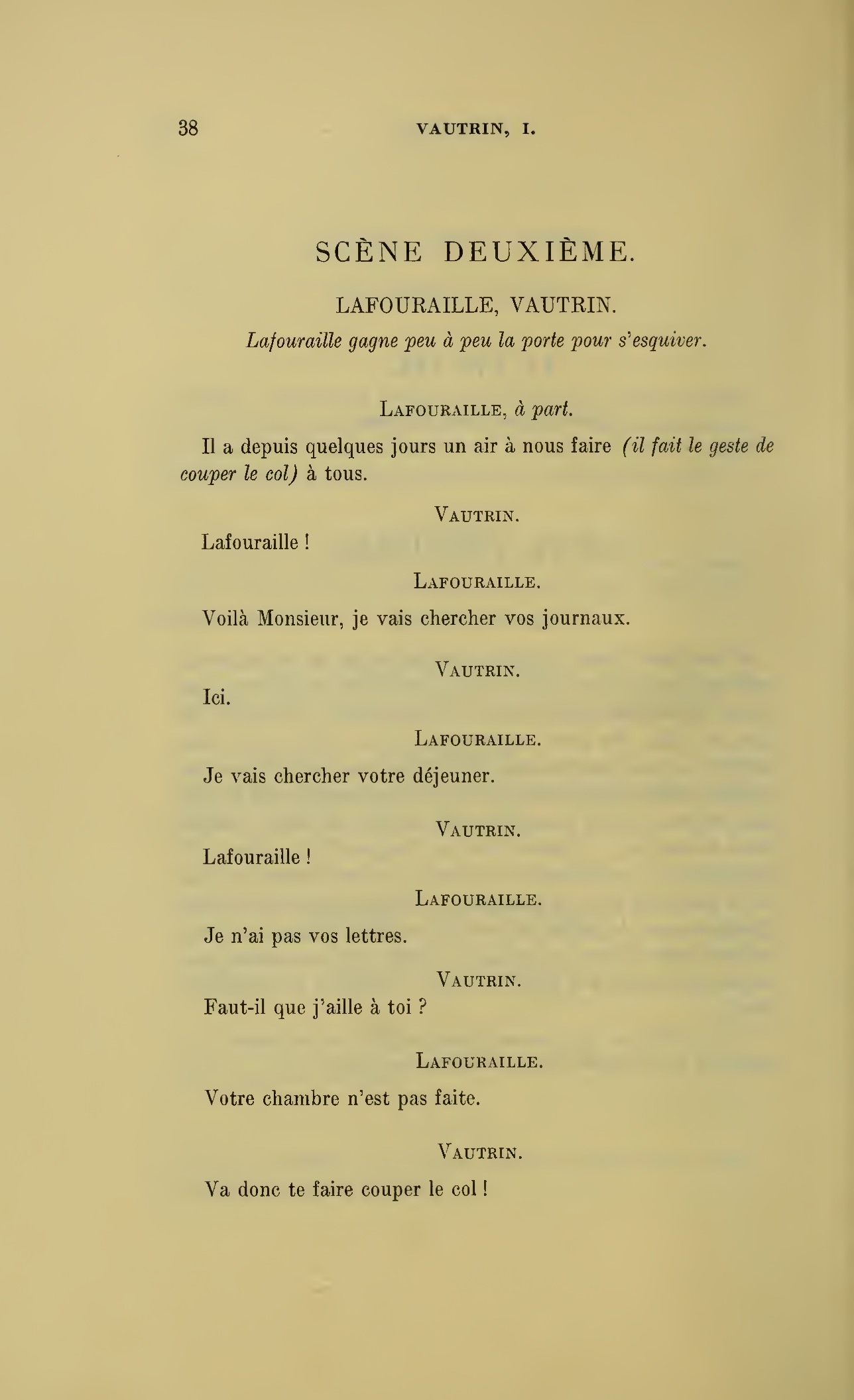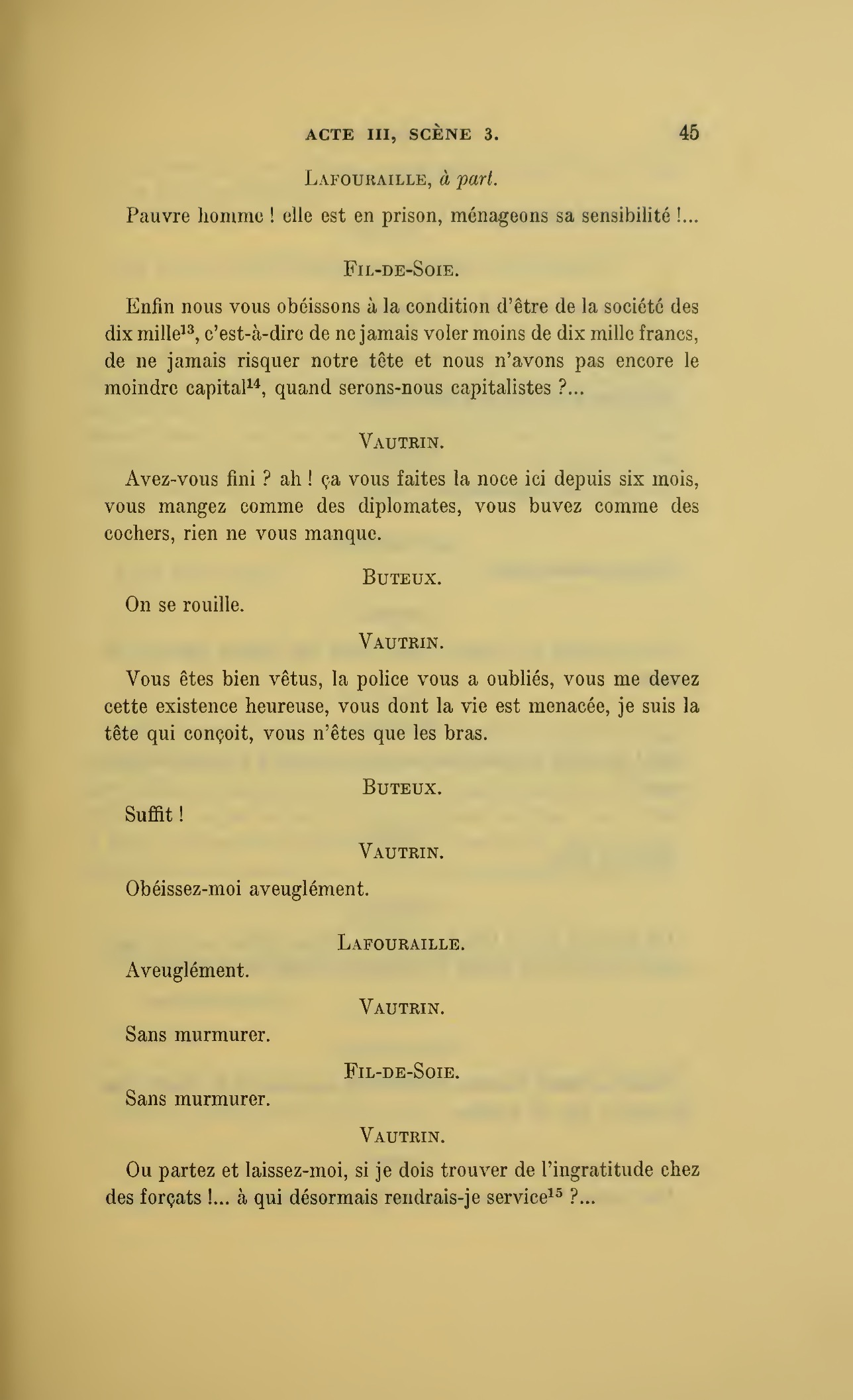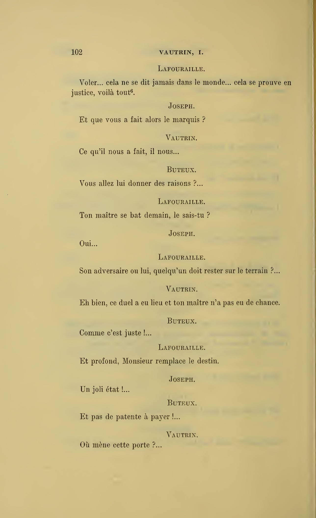 Voici les avantages de la société nouvelle, il n’y a plus de liens entre les maîtres et les domestiques, plus d’attachement, par conséquent plus de trahisons possibles ! (À Joseph.) Se dit-on des mots piquants à table ?