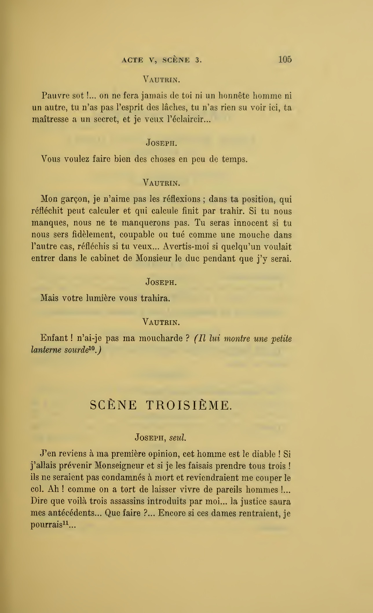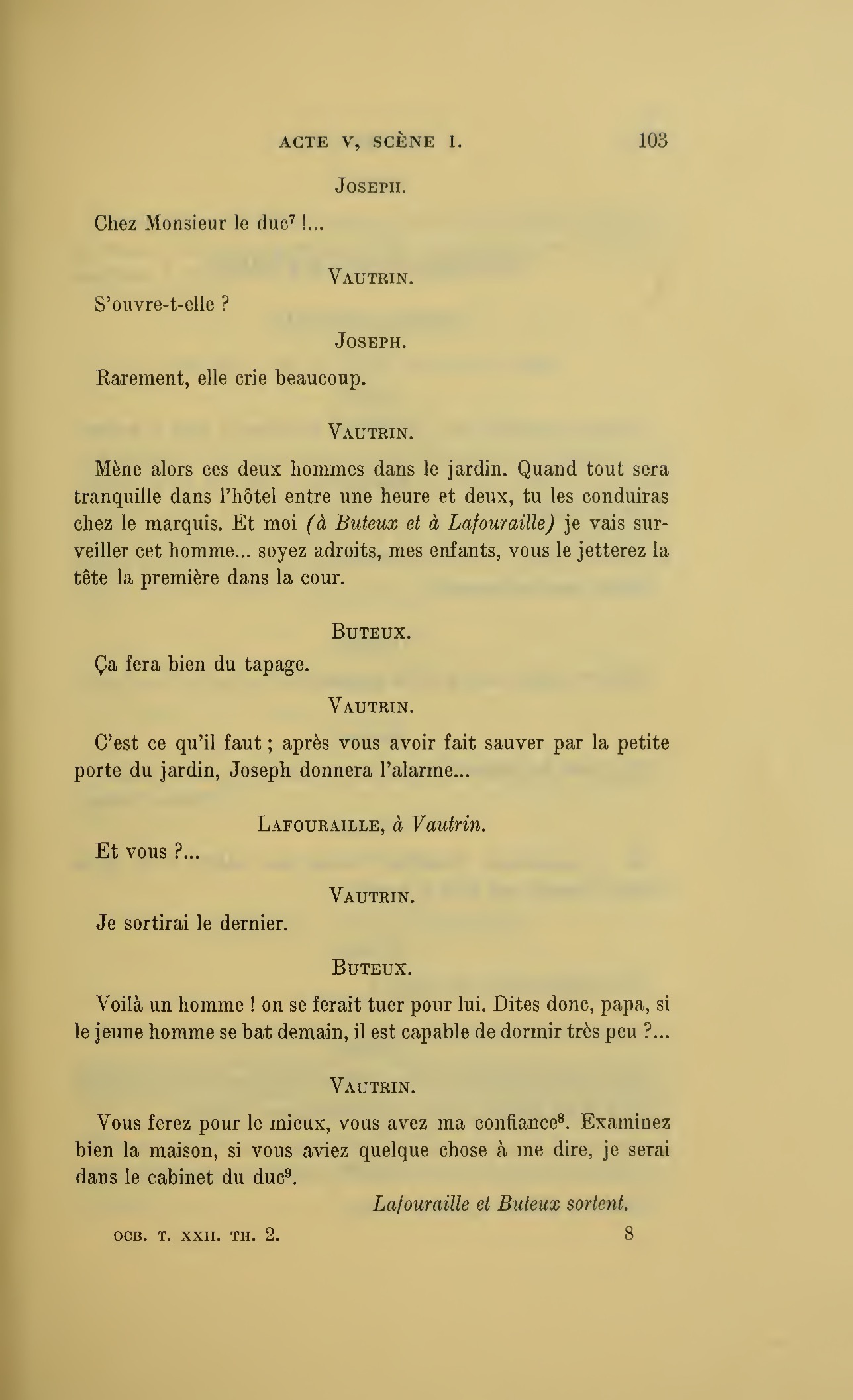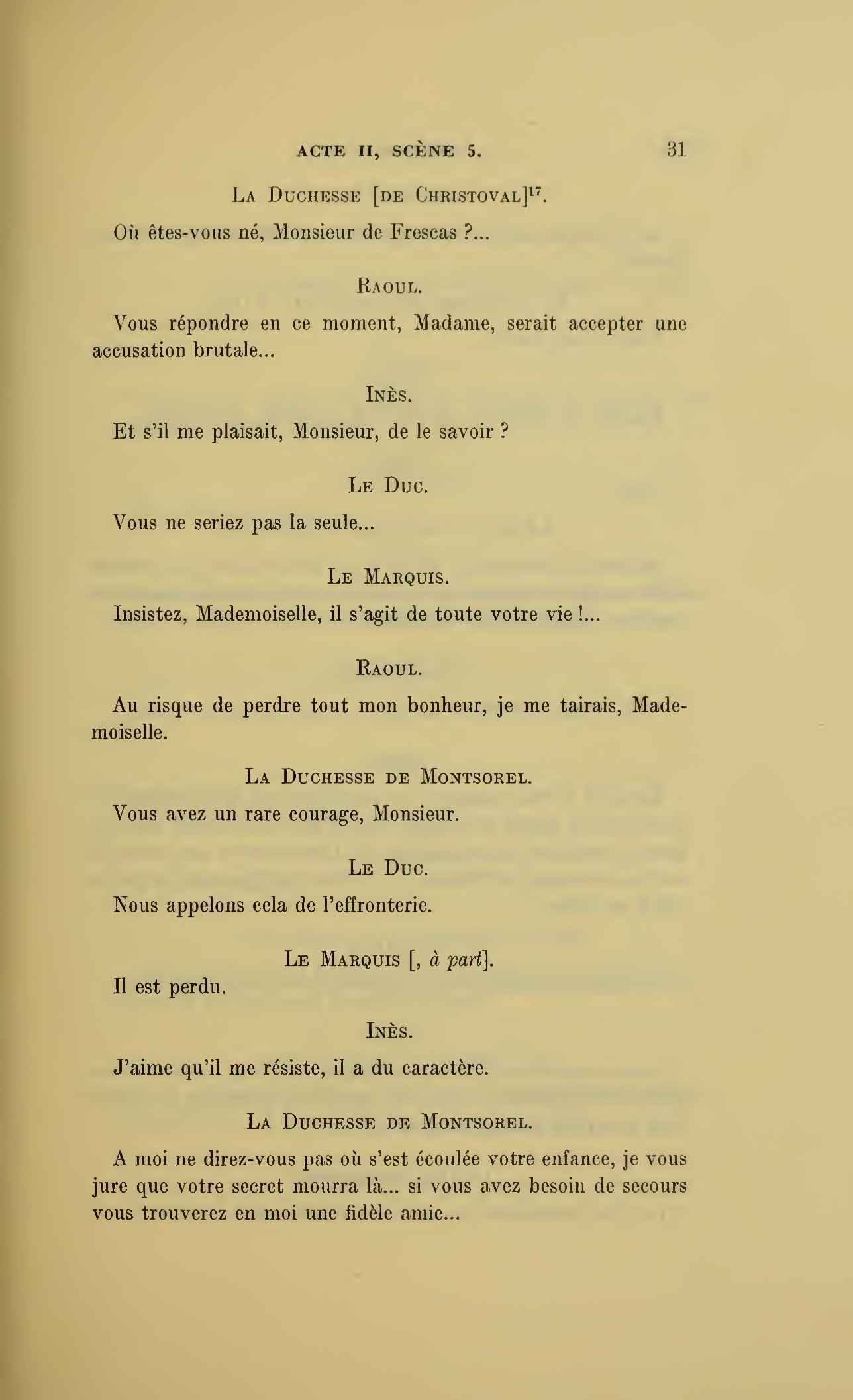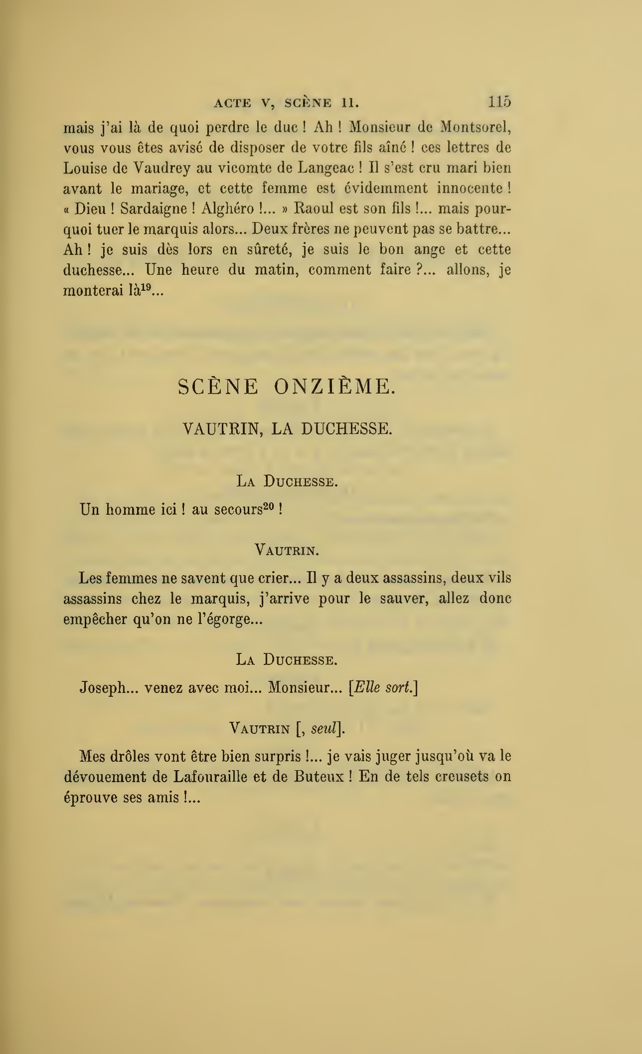 {p. 123} Assassin, tais-toi… (Au duc.) Monseigneur, éloignez un moment tout ce monde.