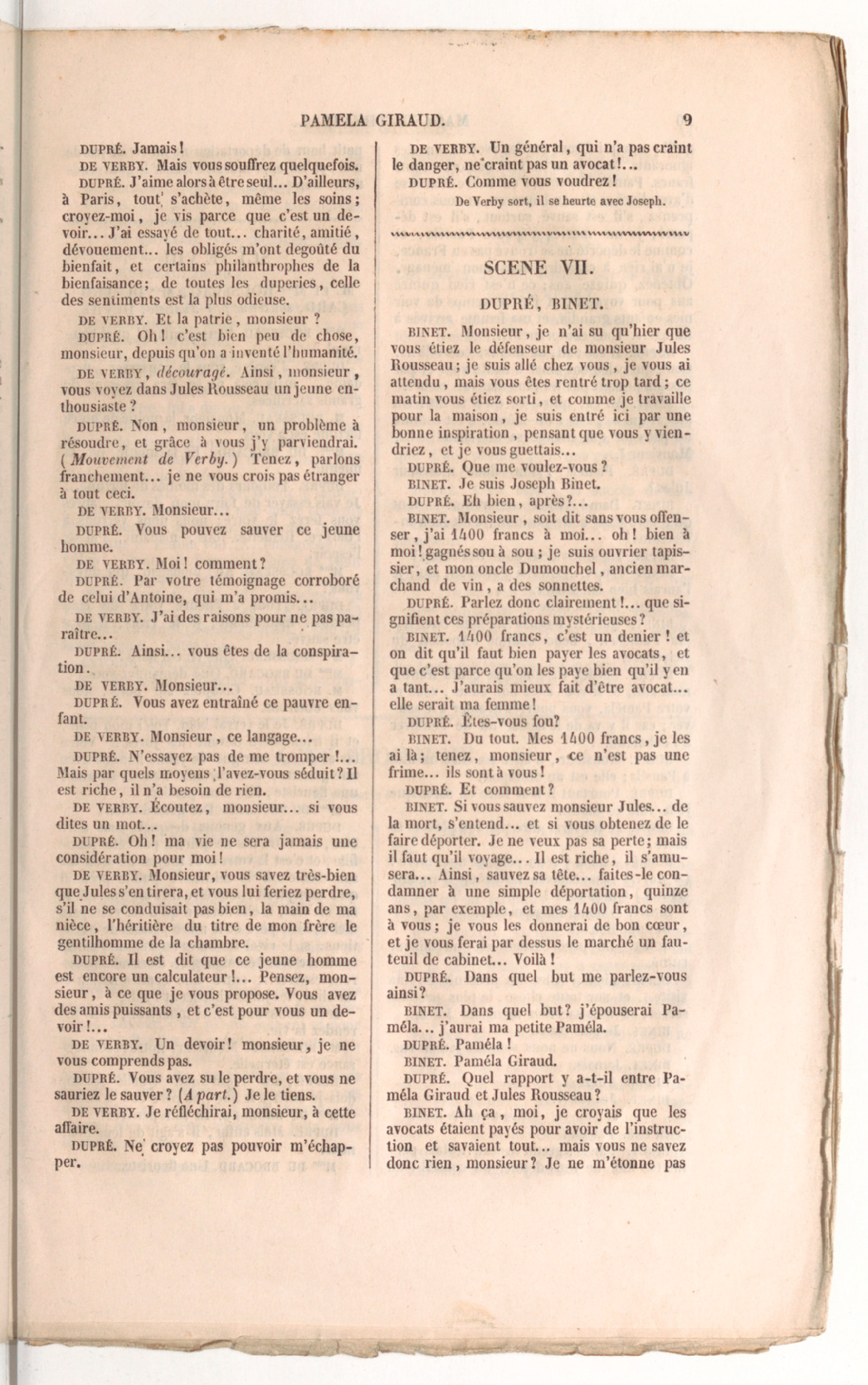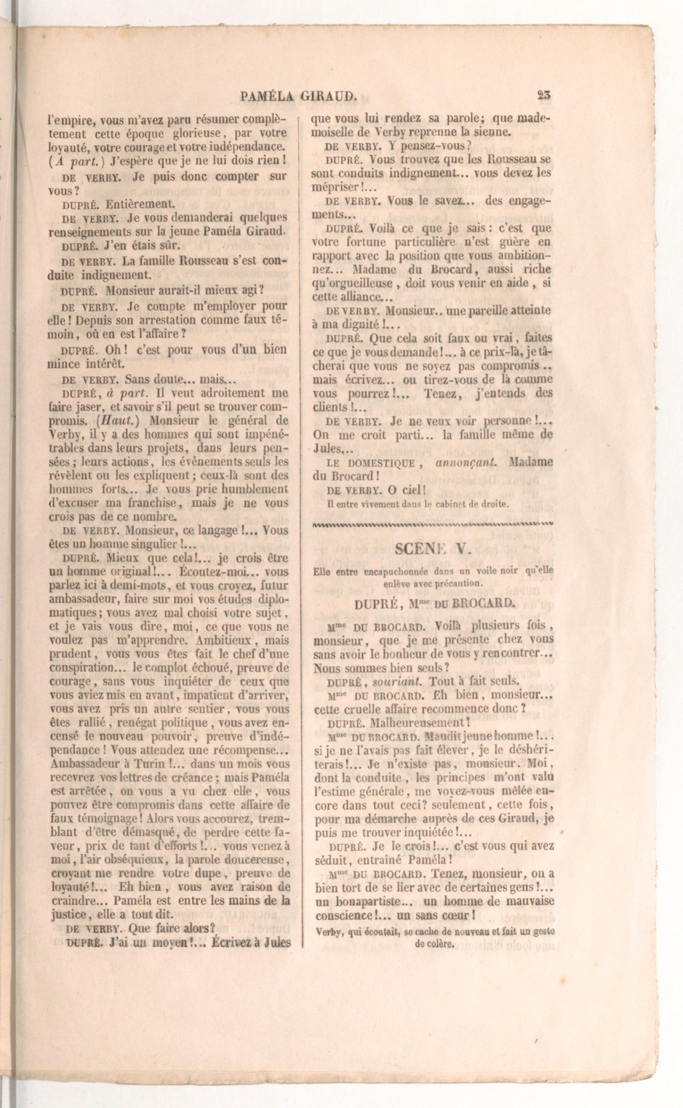 Tais-toi ! tais-toi ! (Mouvement général d’effroi ; Dupré regarde avec anxiété la chambre où est Paméla. À Binet.) T’arrêter !…