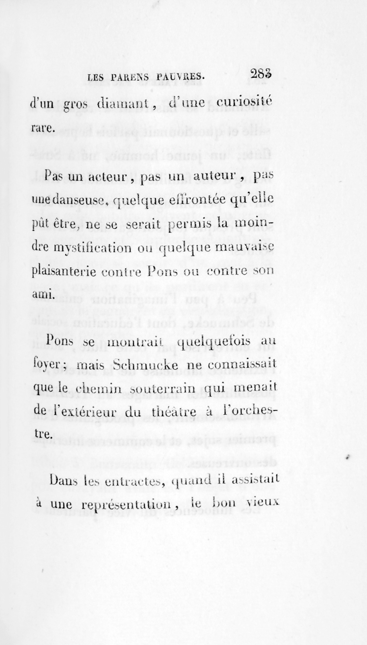 Peut-être trouvera-t-on singulier que la seule âme digne de Pons se soit trouvée dans le troisième dessous d’un théâtre des boulevards.