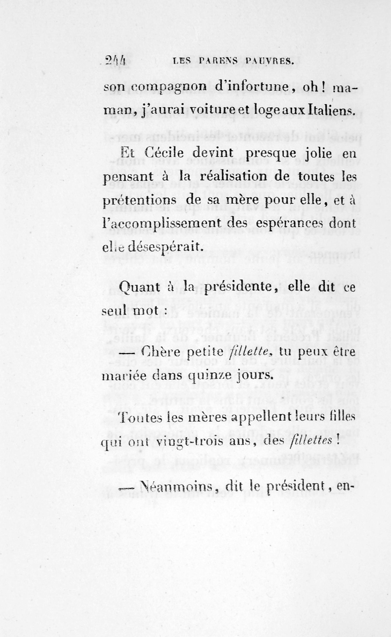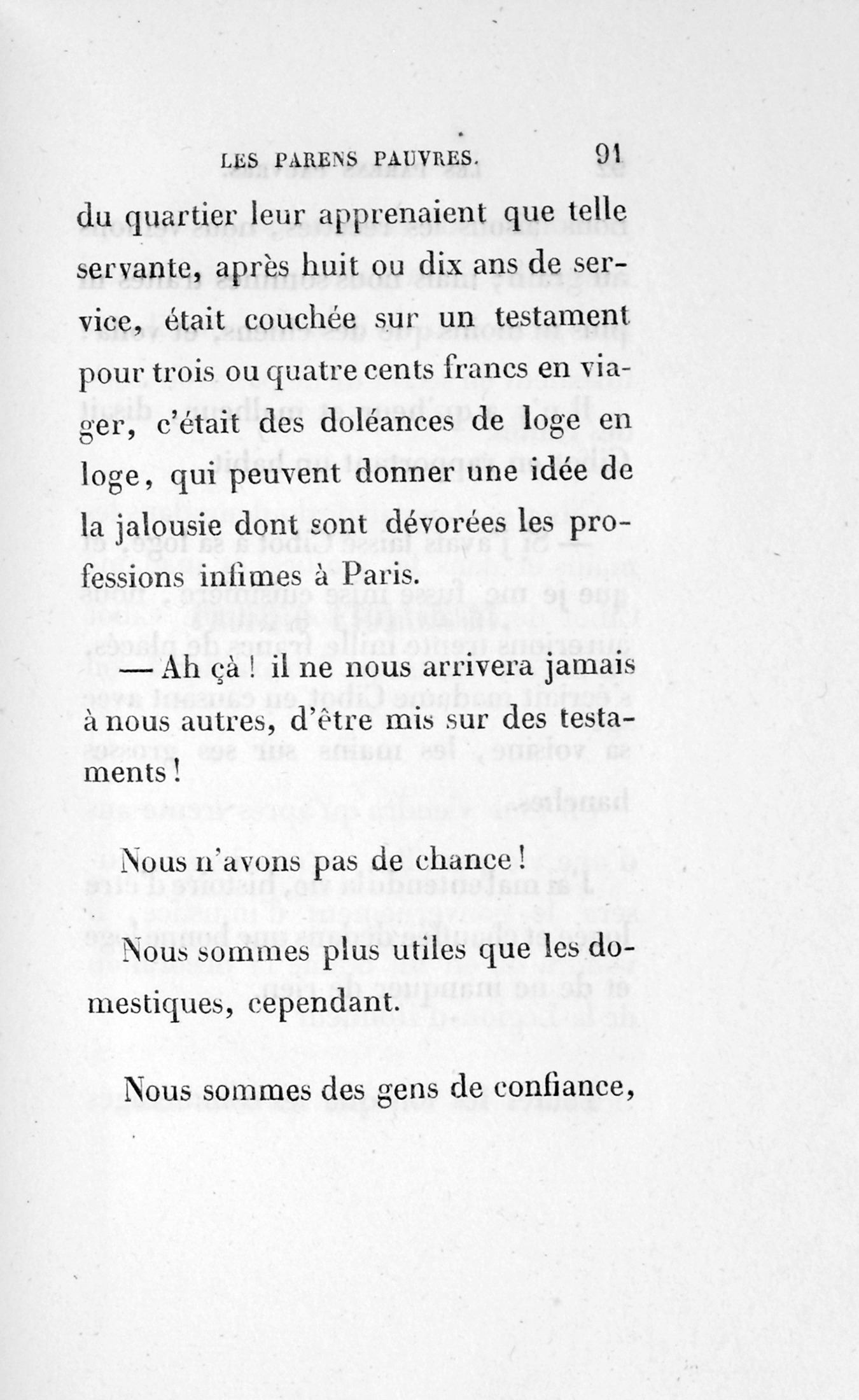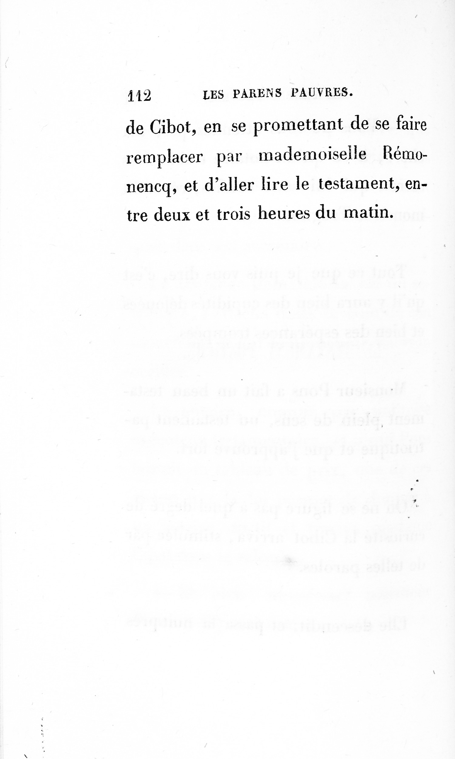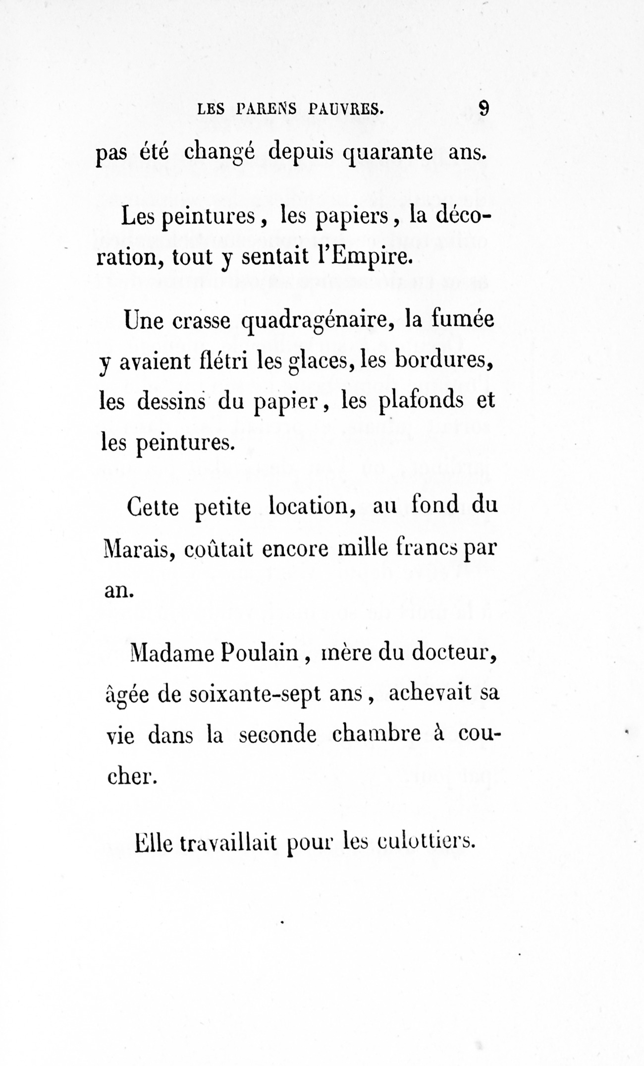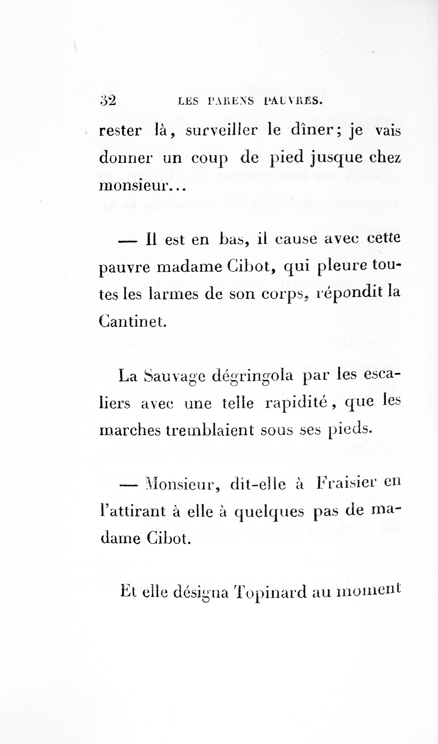 – Eh bien ! madame, je vous ai déjà débarrassée234Erreur du Pétion : « débarrassé » au lieu de « débarrassée ». des soixante mille francs que je calculais devoir être donnés à cette ignoble portière, cette madame Cibot.