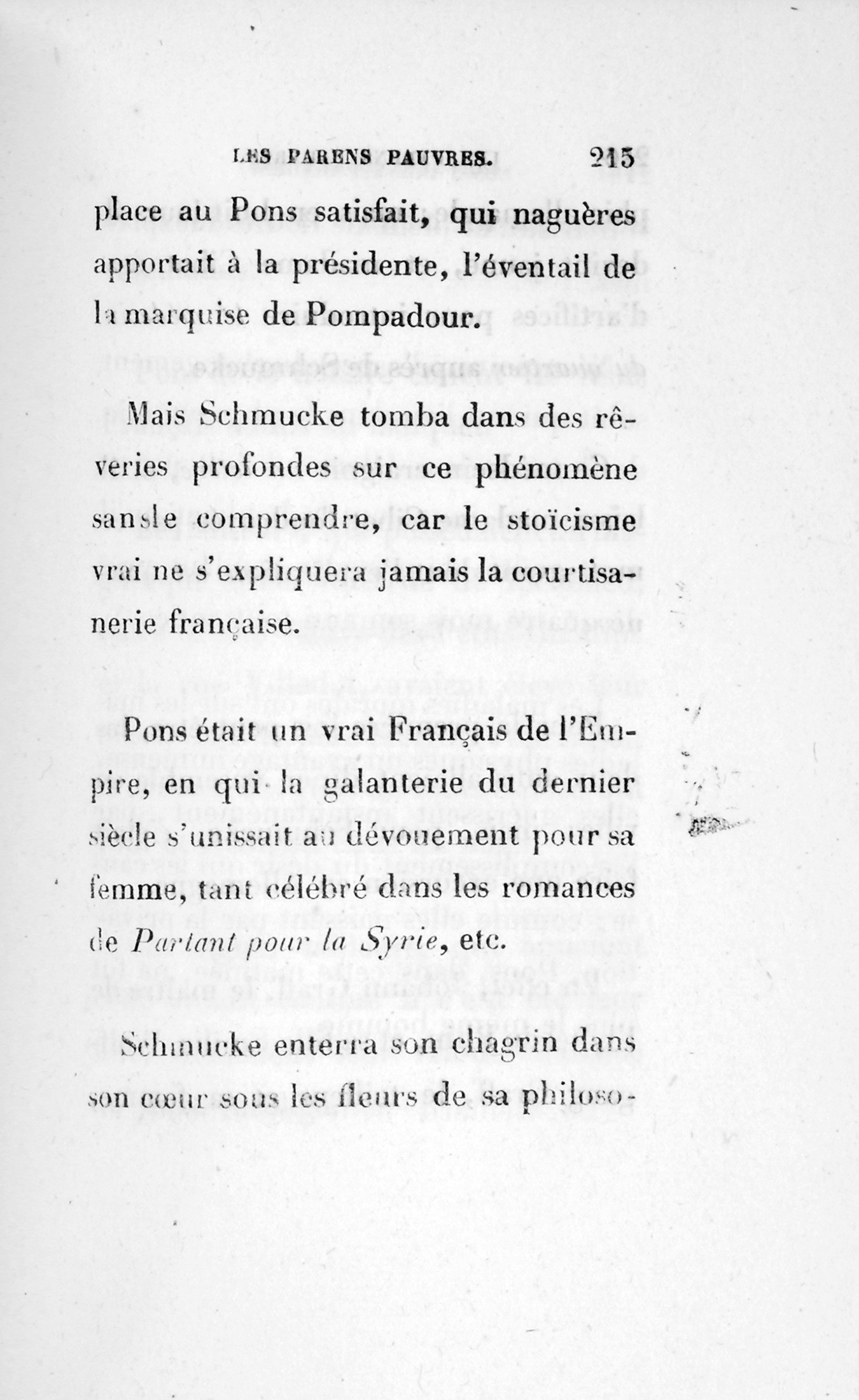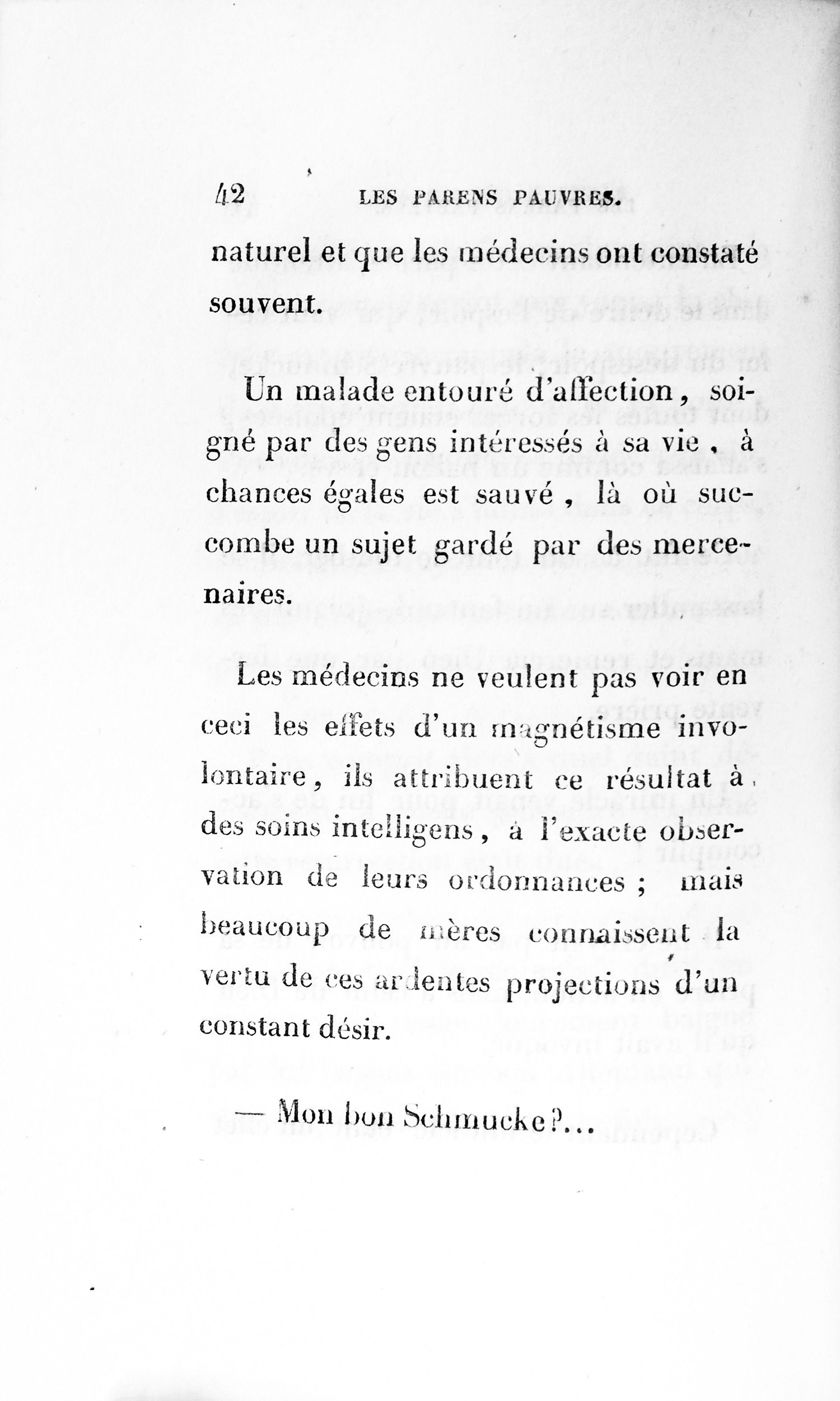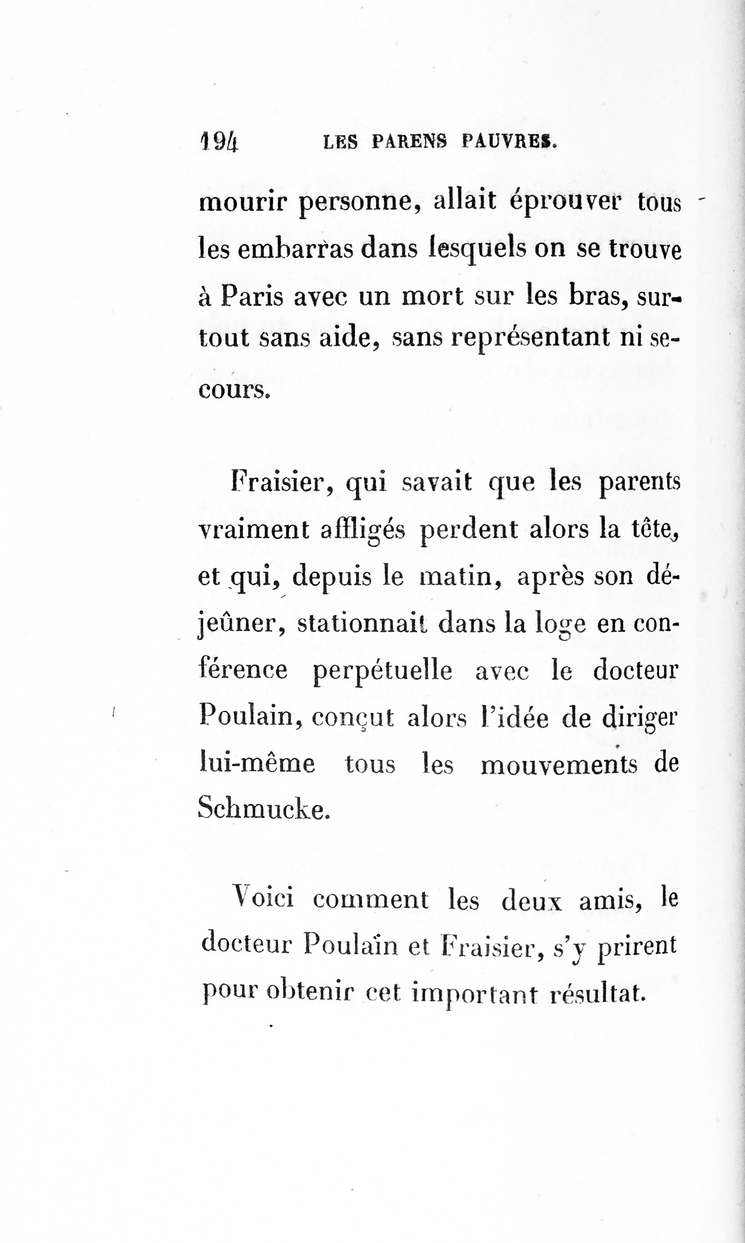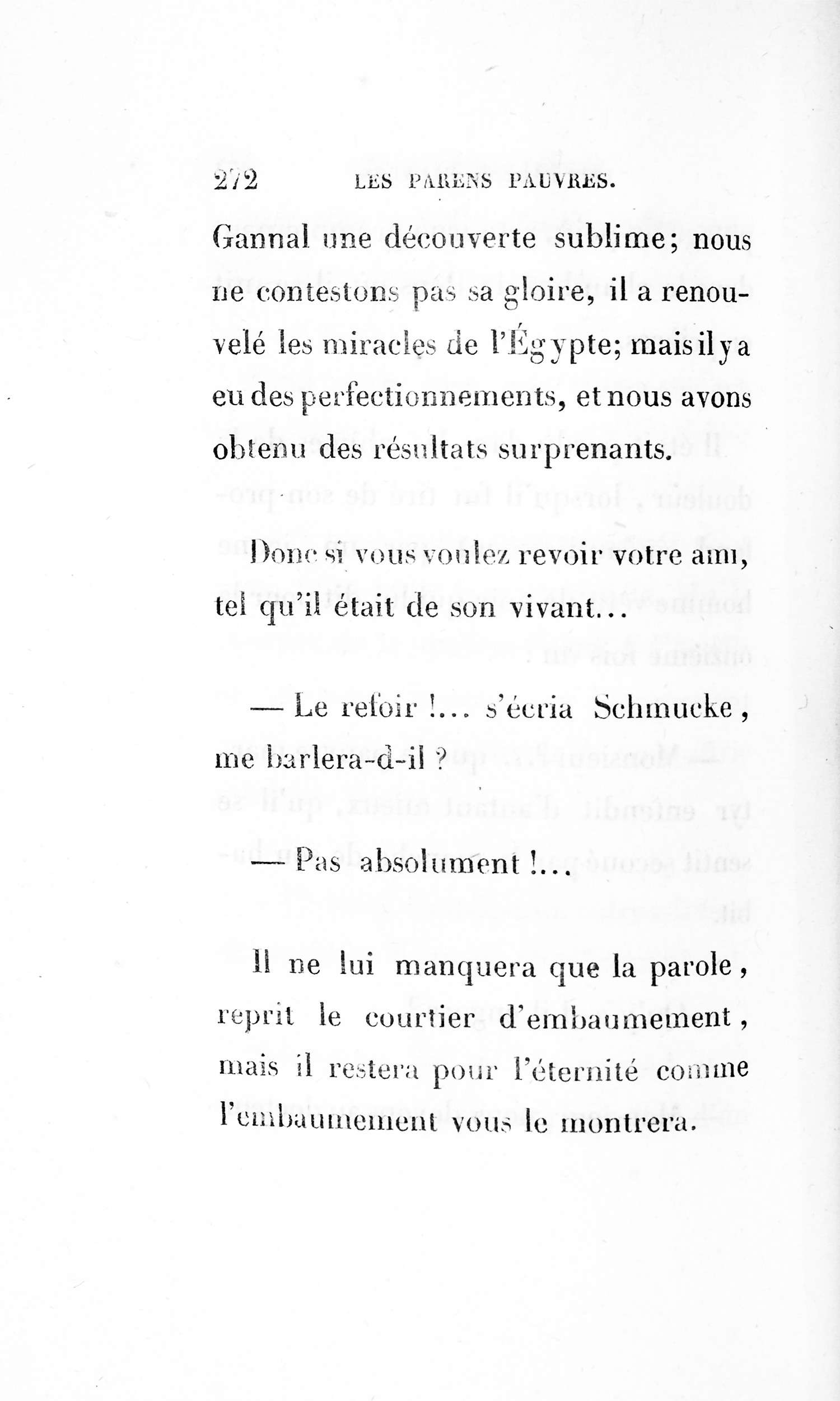 p. 158 Schmucke prit le papier, le lut, et en se voyant traité comme il l’était, ne comprenant rien aux gentillesses de la procédure, il reçut un coup mortel.