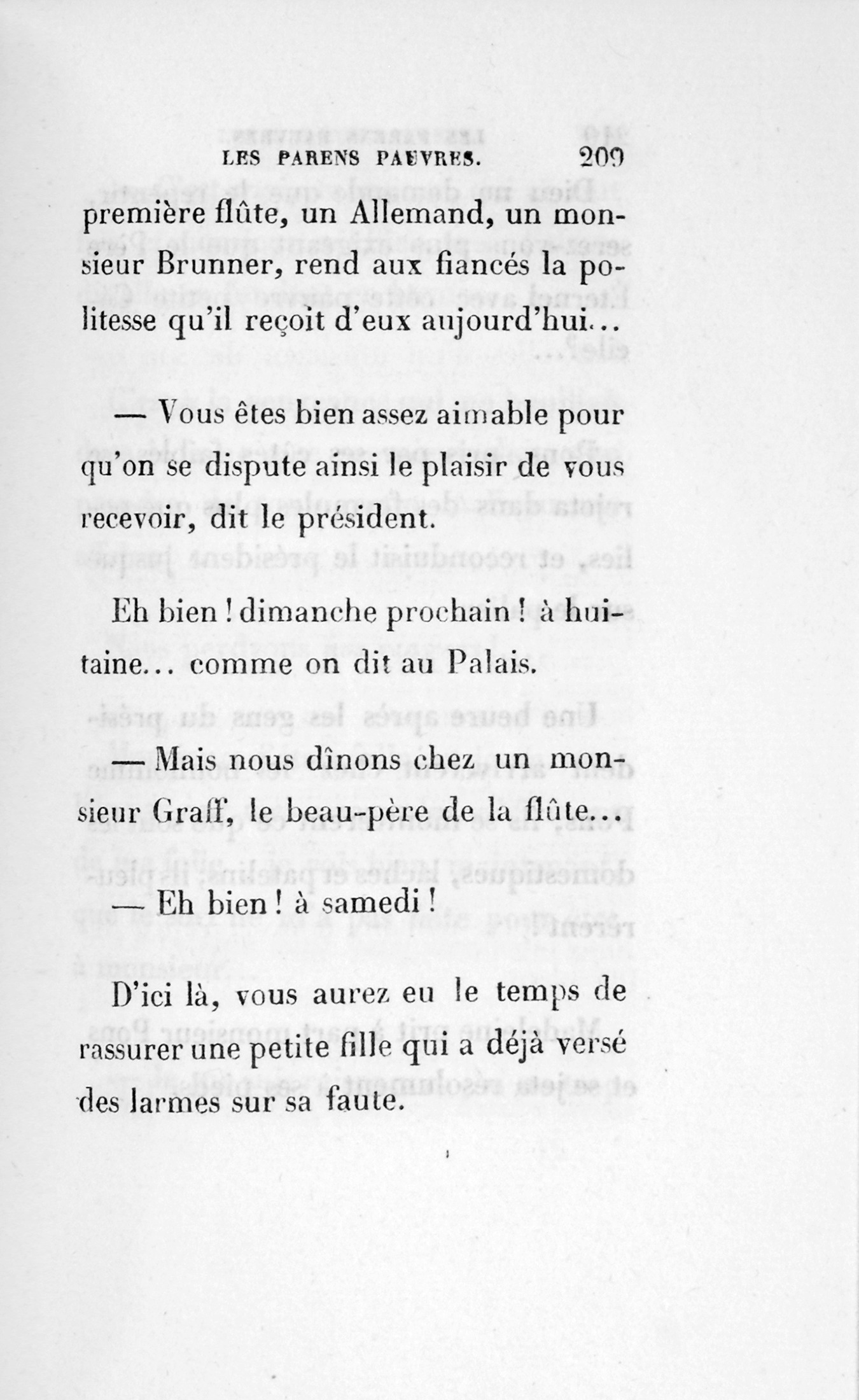 – Eh bien ! belle dame, dit Gaudissard, veuillez faire préparer l’acte ; à quatre heures, je vous amènerai l’Allemand…