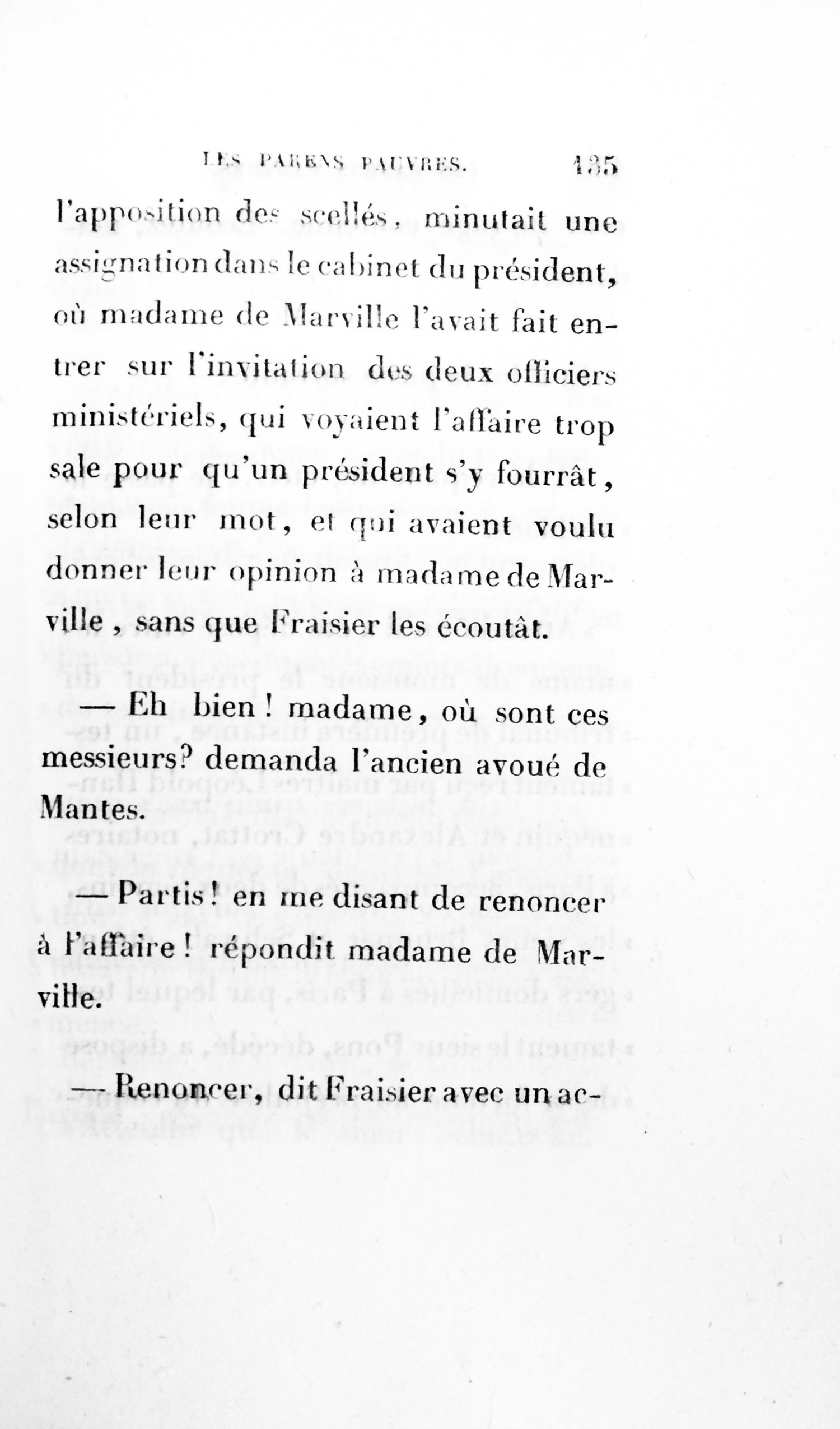 Les deux officiers ministériels quittèrent donc la présidente en l’engageant à se défier de Fraisier, sur qui naturellement ils avaient pris des renseignements.