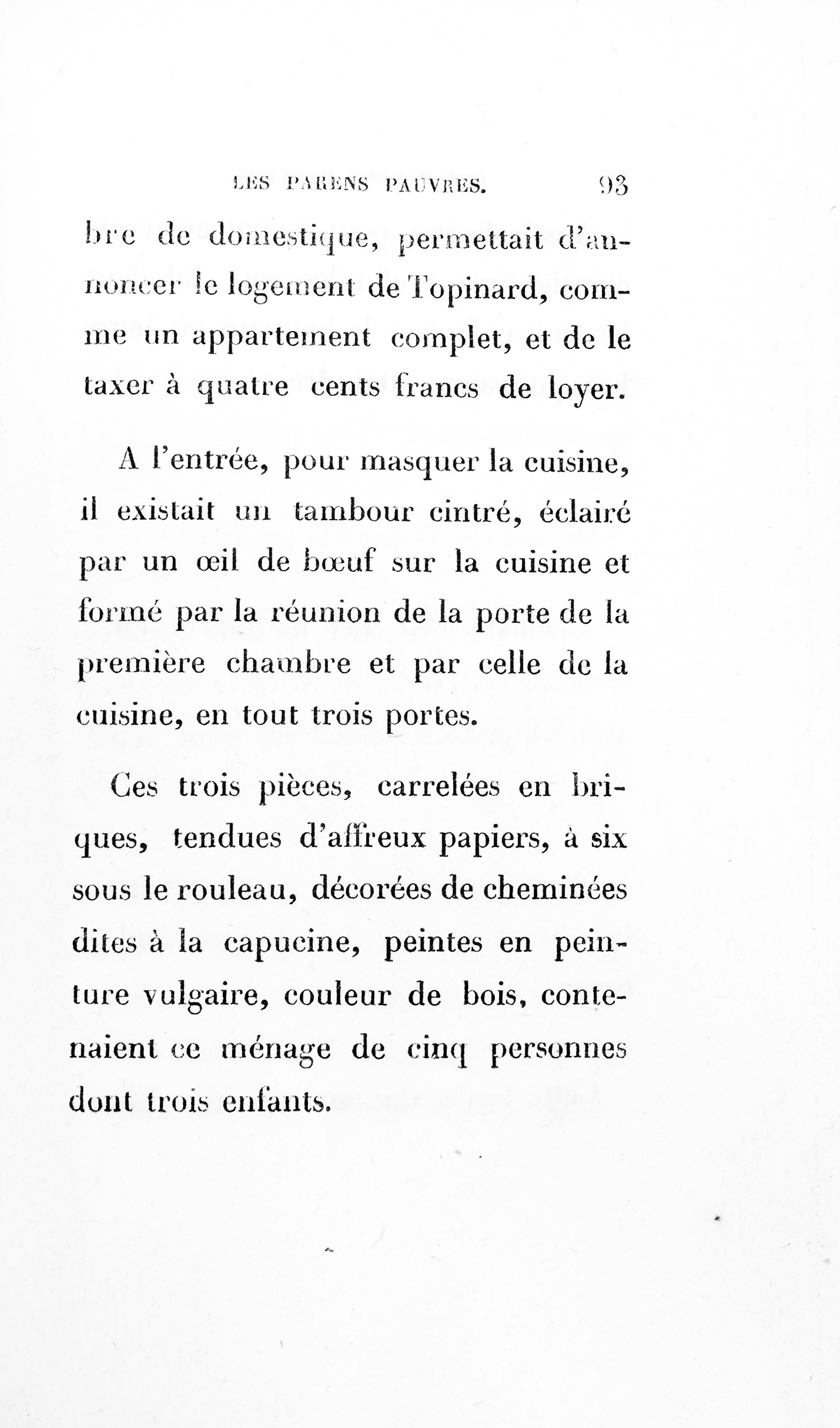 On reconnaissait d’ailleurs à la première vue un homme bien élevé en proie à quelque vice secret, ou l’un de ces petits rentiers dont toutes les dépenses sont si nettement déterminées par la médiocrité du revenu, qu’une vitre cassée, un habit déchiré, ou la peste philanthropique d’une quête, suppriment leurs menus plaisirs pendant un mois.